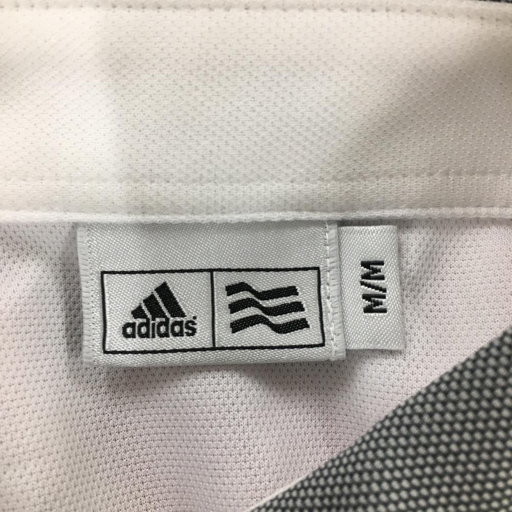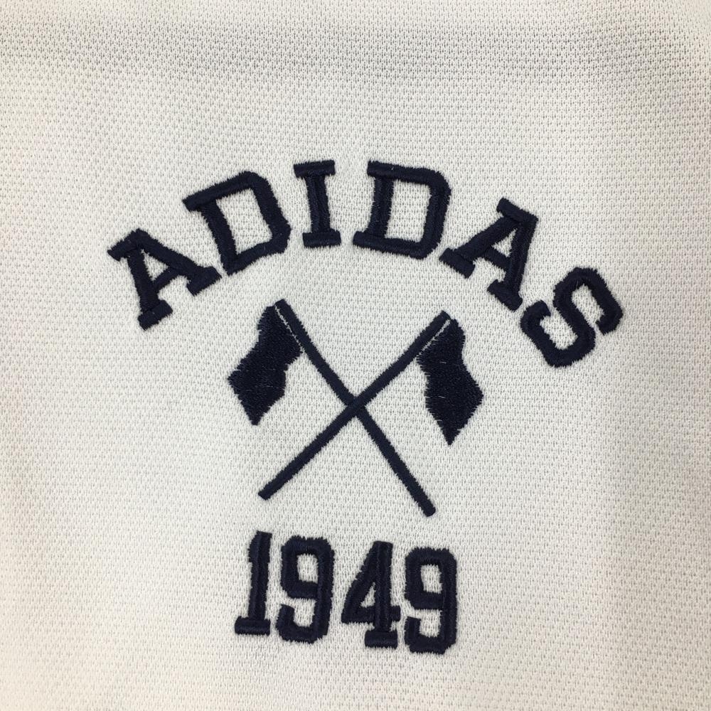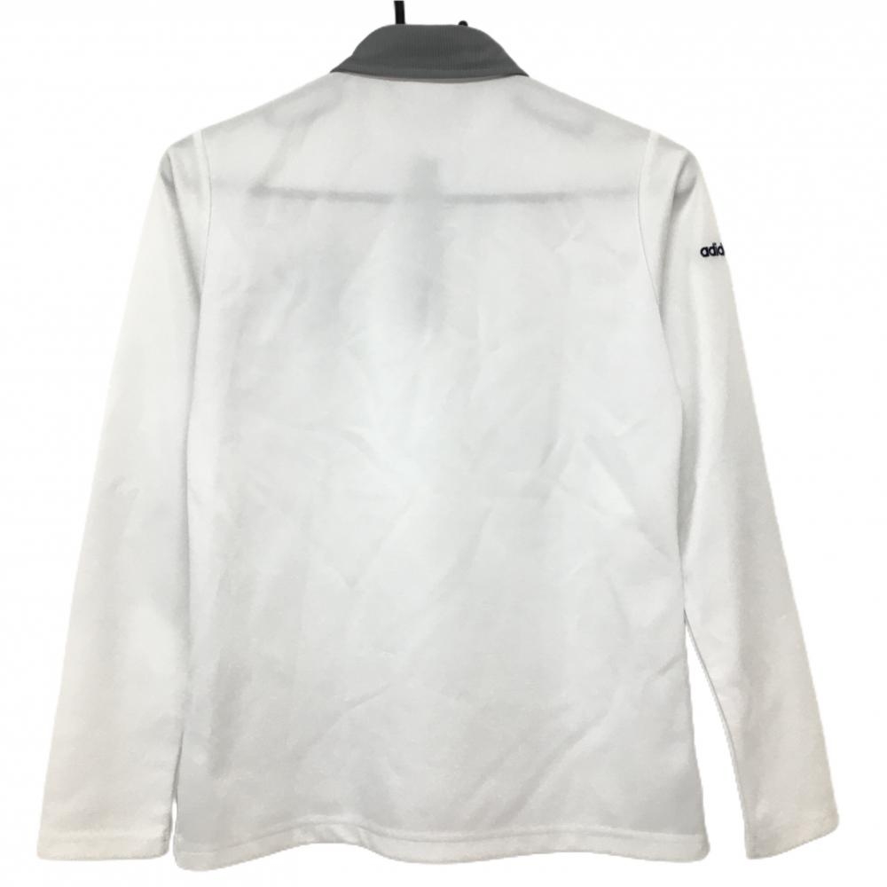 アディダス 長袖ポロシャツ 白×ネイビー 襟織生地 胸刺しゅう レディース M/M ゴルフウェア adidas