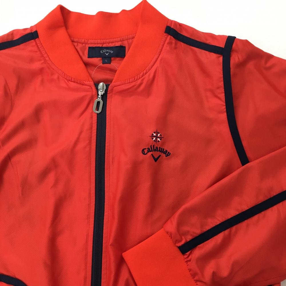 【超美品】キャロウェイ 2WAYジャケットブルゾン レッド×ネイビー 地模様 袖着脱可 レディース L ゴルフウェア Callaway