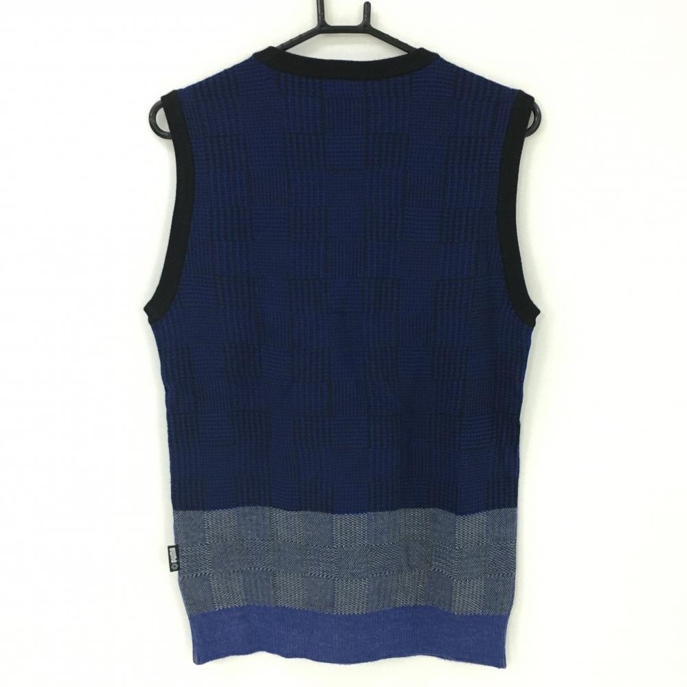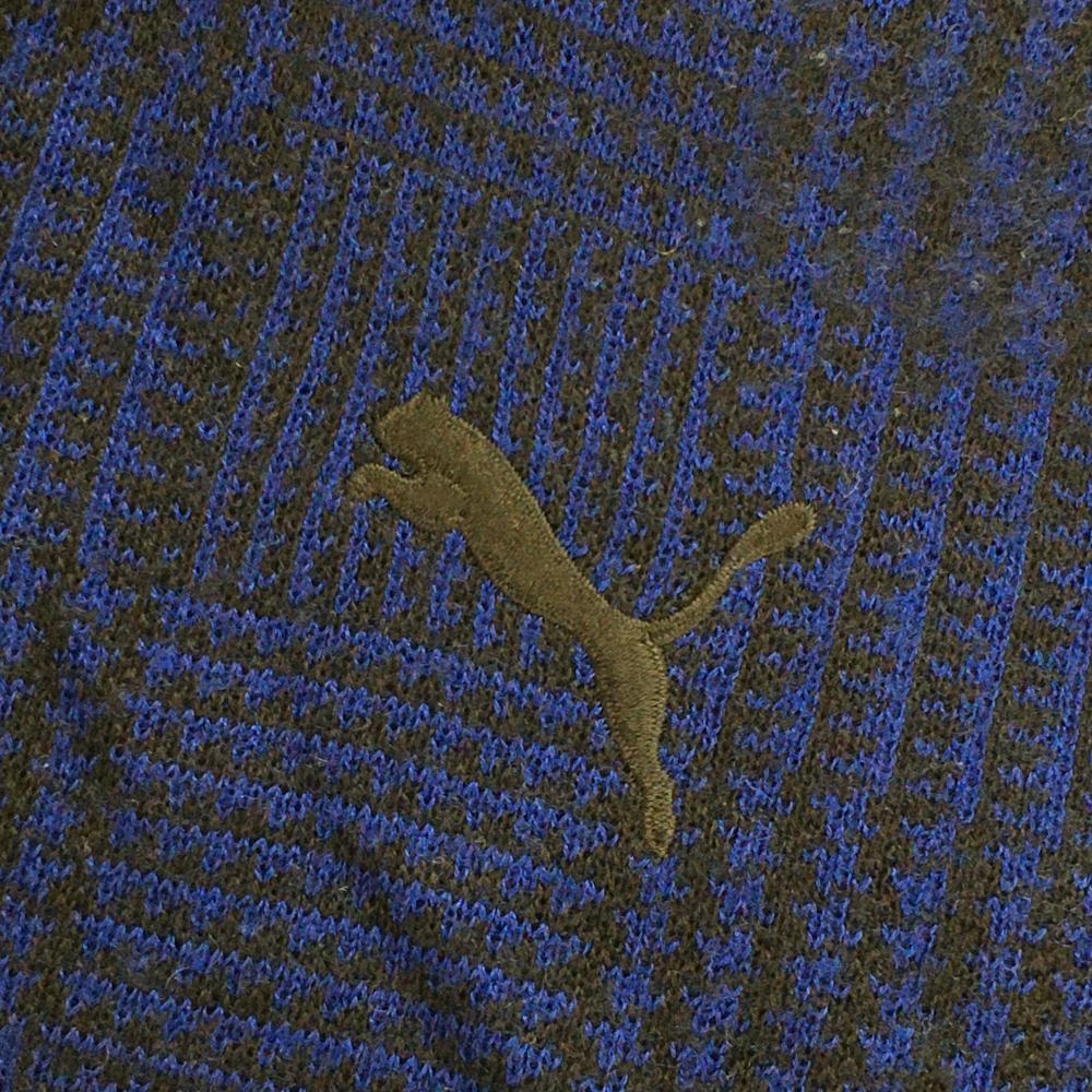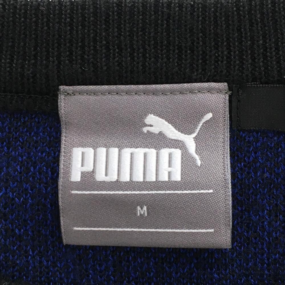 【美品】プーマ ニットベスト ブルー×黒 グレンチェック ウール混 メンズ M ゴルフウェア PUMA