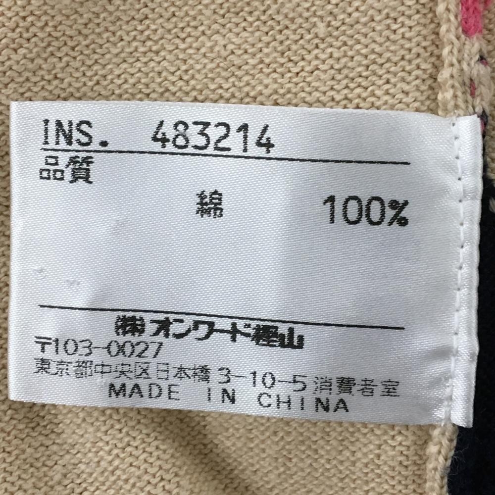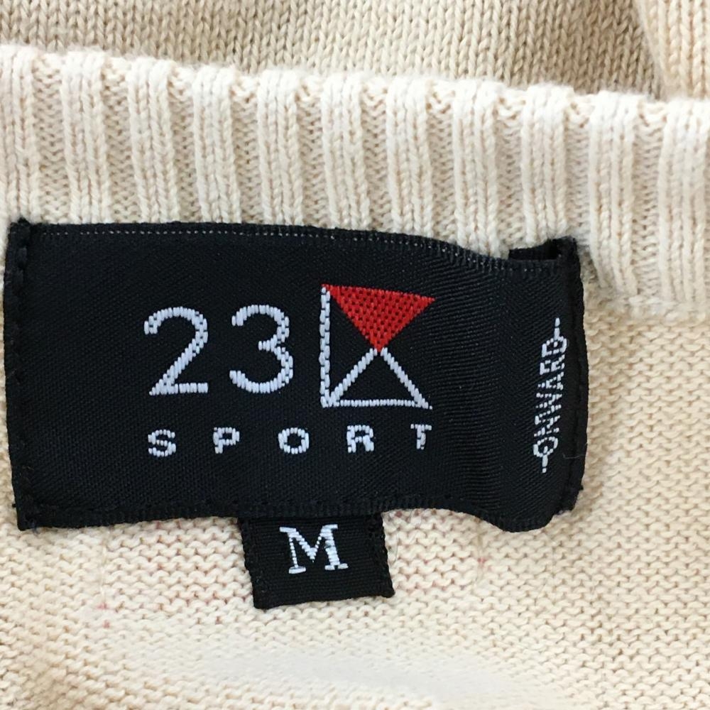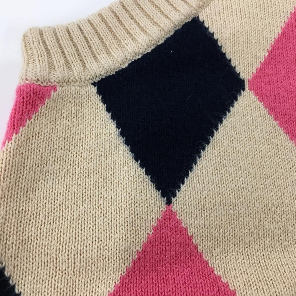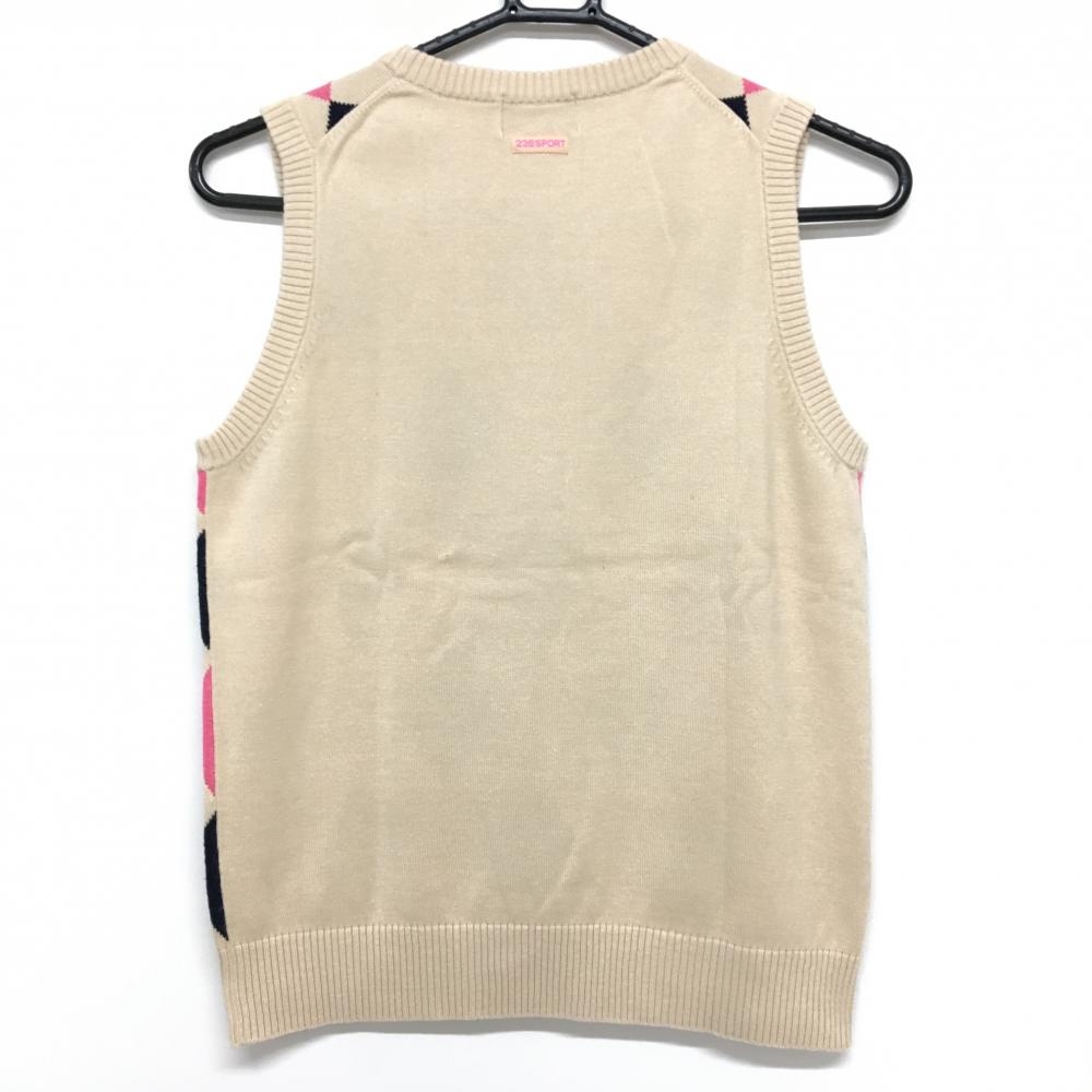 23区スポーツ ニットベスト ベージュ×ピンク ダイヤ柄 コットン100% レディース M ゴルフウェア 23区