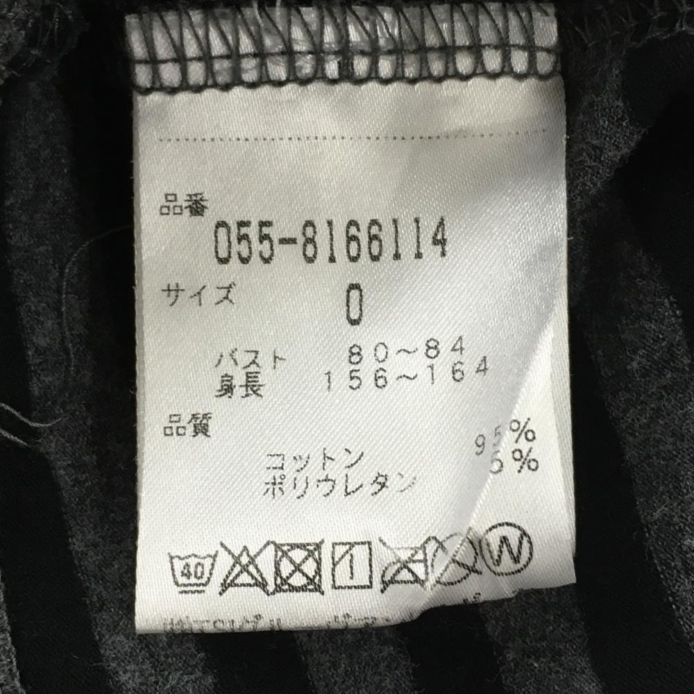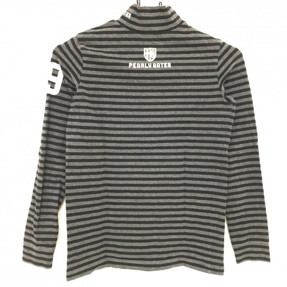 【美品】パーリーゲイツ 長袖ハイネックシャツ グレー×黒 ボーダー ロゴプリント レディース 0(S) ゴルフウェア PEARLY GATES