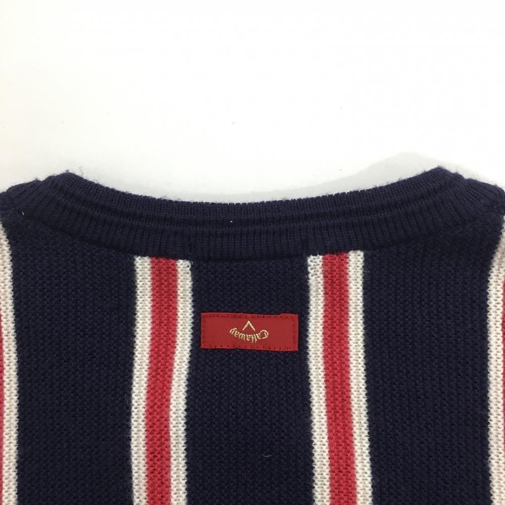 【美品】キャロウェイ レッドレーベル セーター ネイビー×レッド ストライプ ウール混 ニット メンズ M ゴルフウェア Callaway