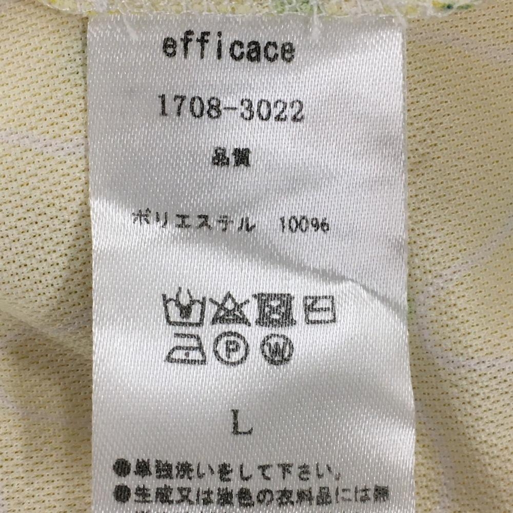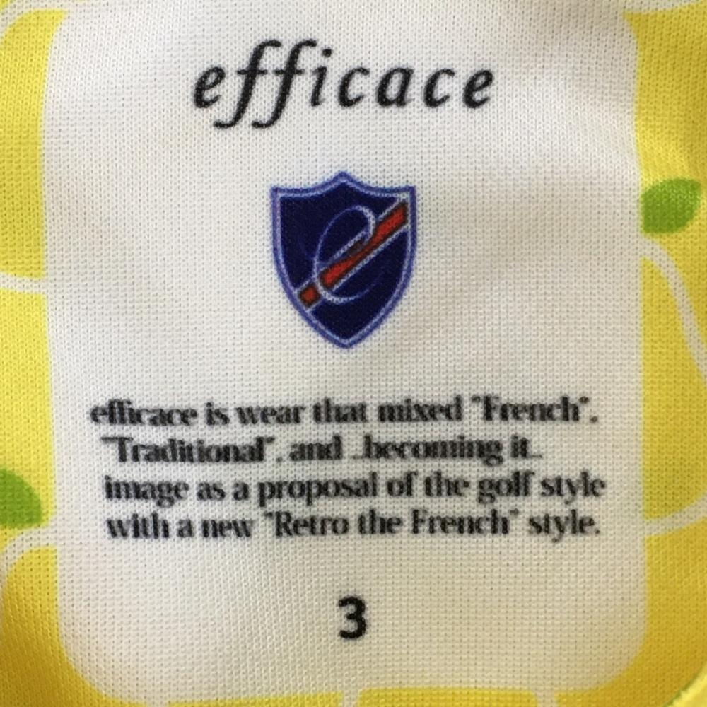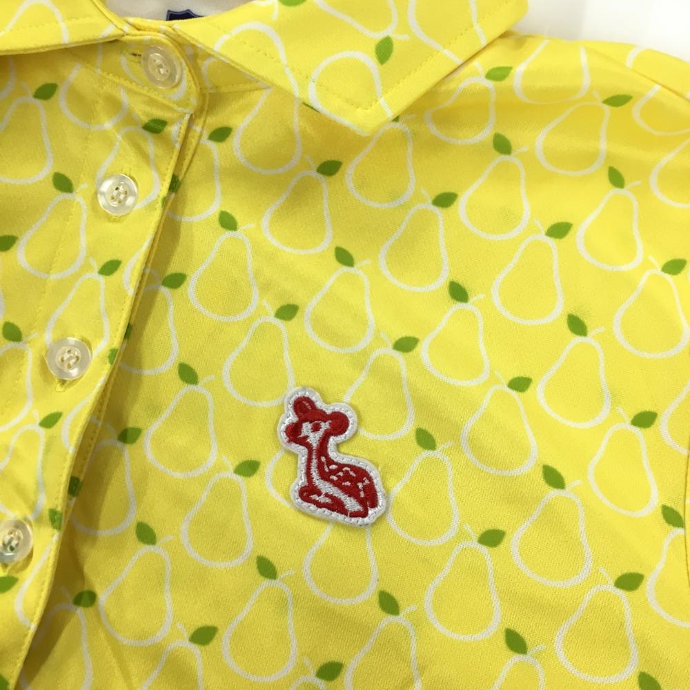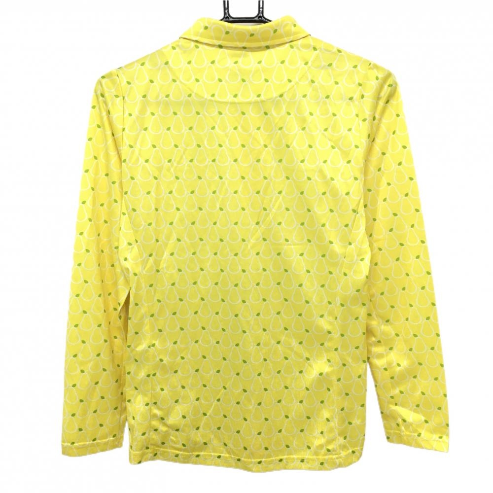 【超美品】エフィカス 長袖ポロシャツ イエロー×ライトグリーン ラフランス柄 洋梨 胸元ワッペン レディース 3(L) ゴルフウェア efficace