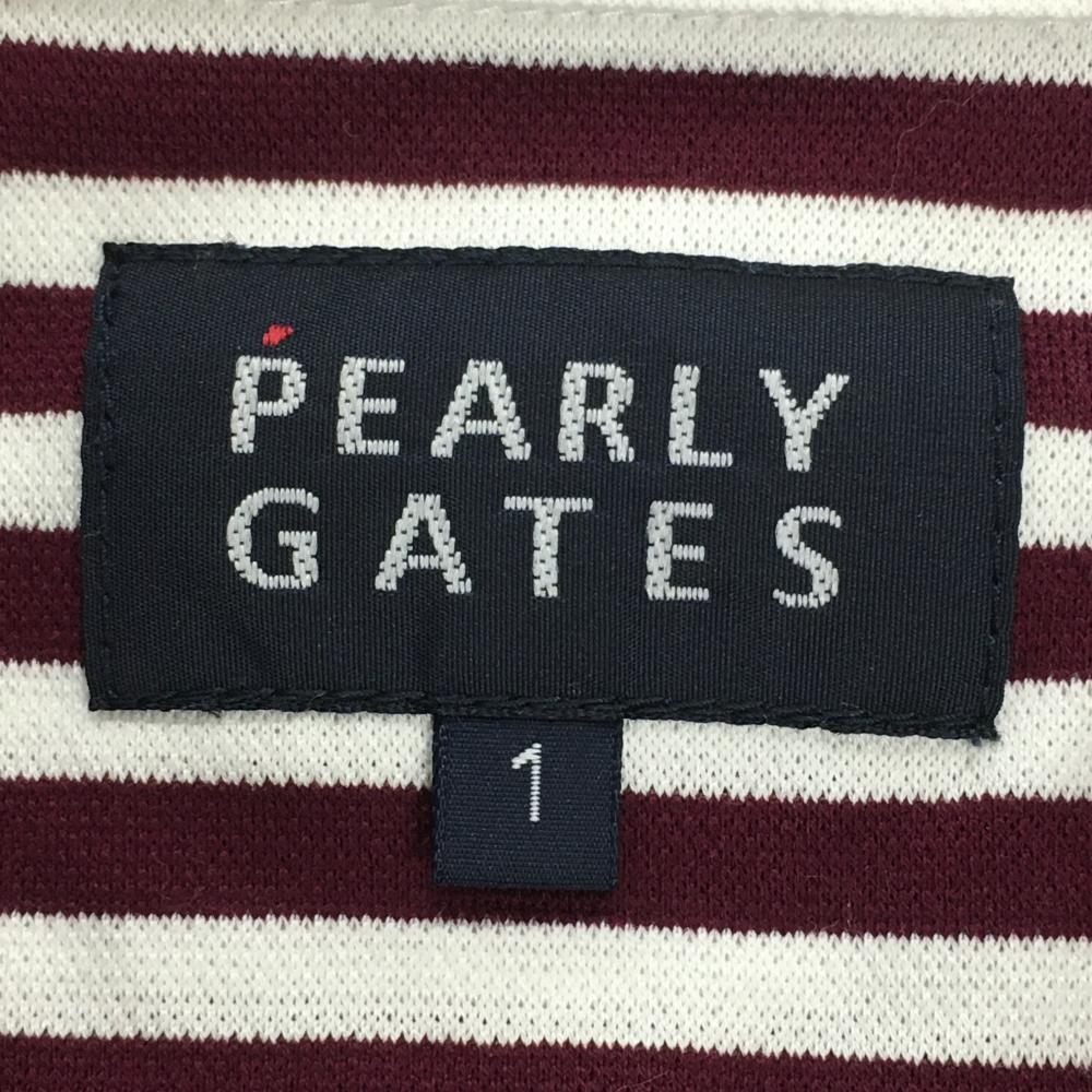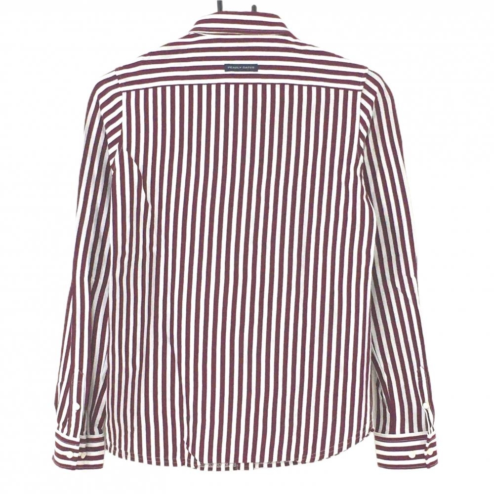 【超美品】パーリーゲイツ 長袖シャツ ボルドー×白 ストライプ ボタンダウン レディース 1(M) ゴルフウェア PEARLY GATES