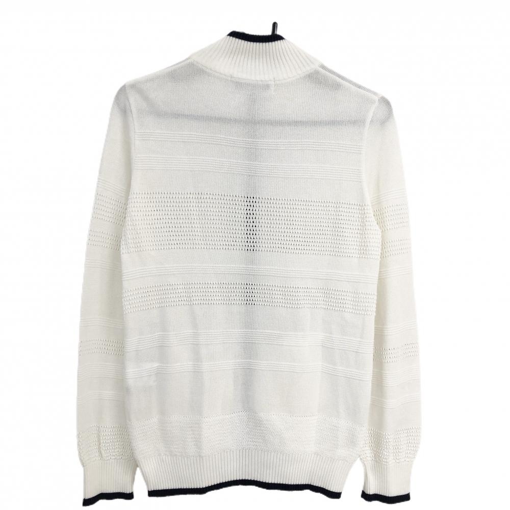 アダバット ニットブルゾン 白×ネイビー 透かし編み レディース 38(M) ゴルフウェア adabat