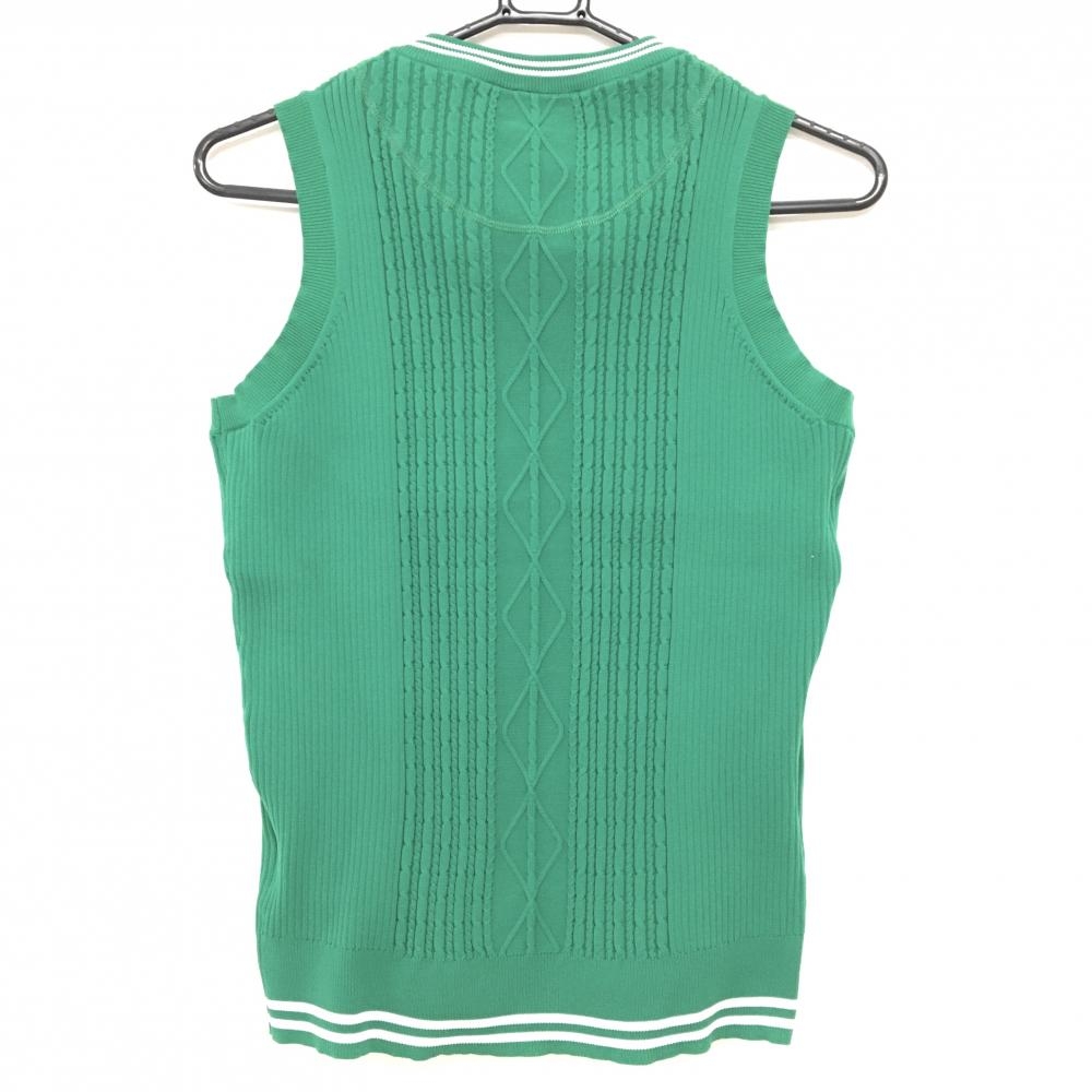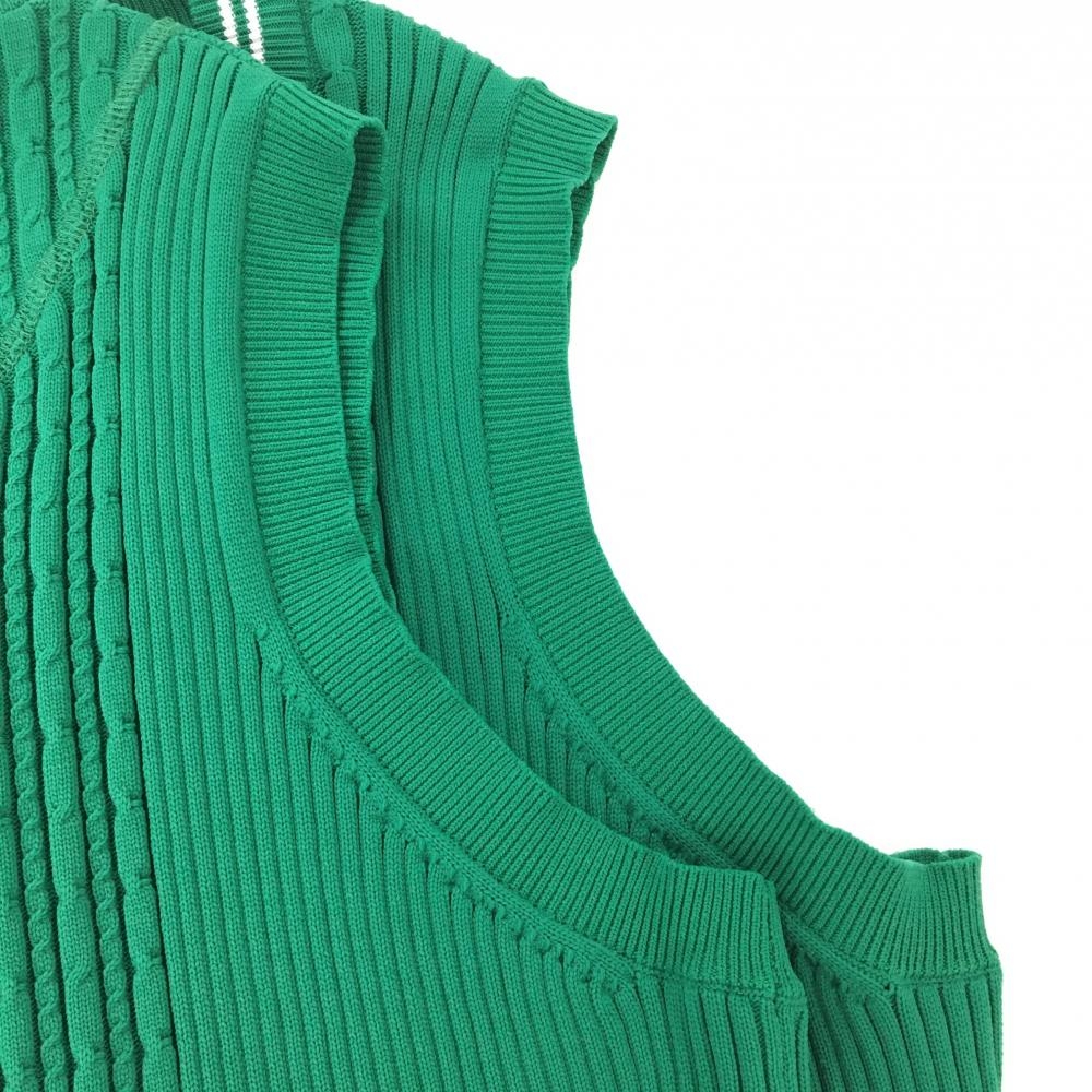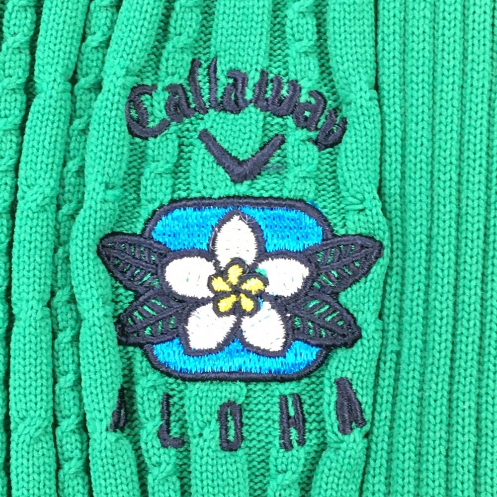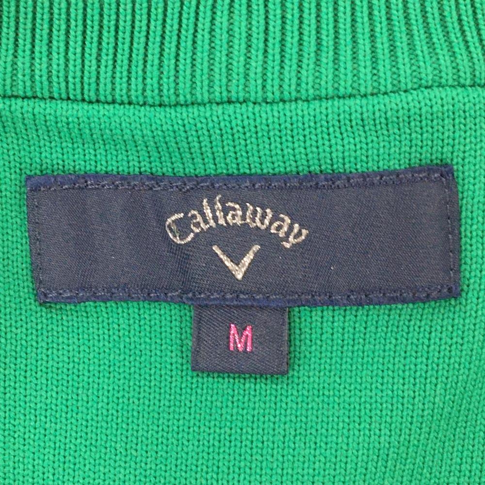 キャロウェイ ニットベスト グリーン ロゴ刺しゅう ネック白ライン Vネック レディース M ゴルフウェア Callaway
