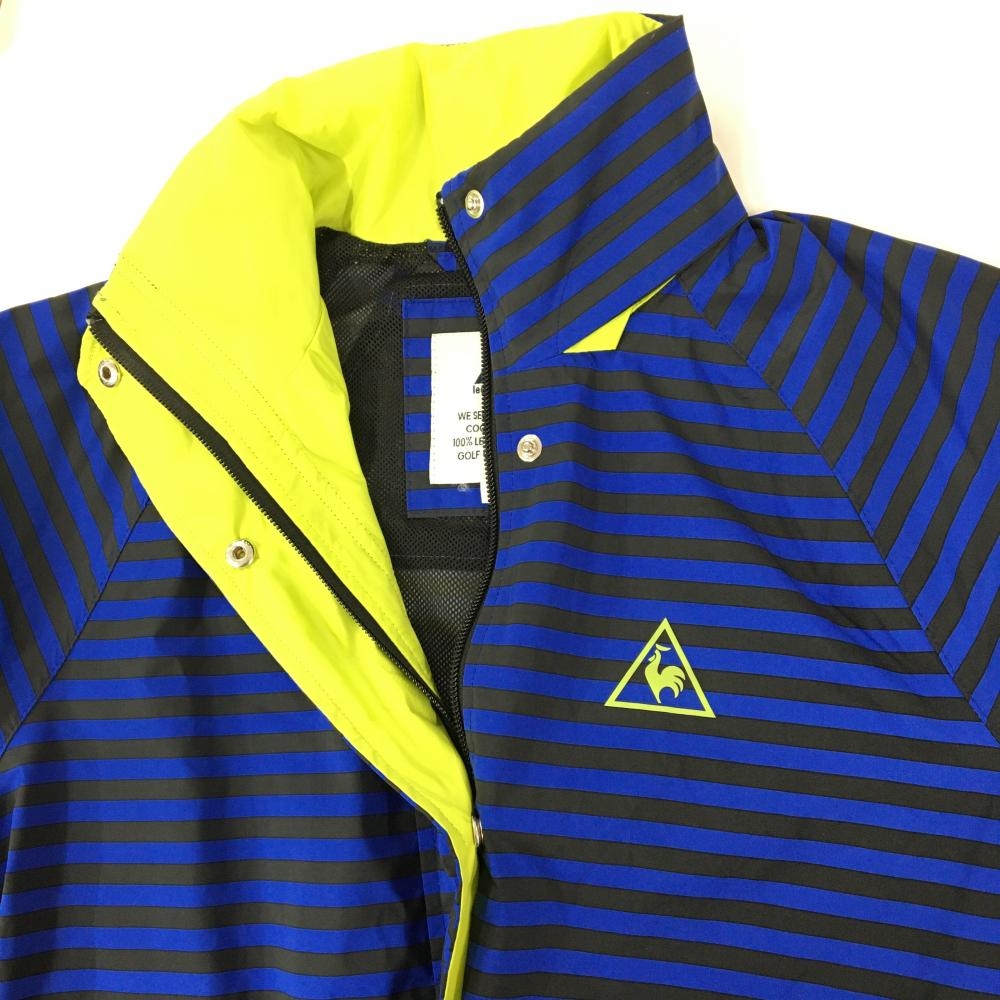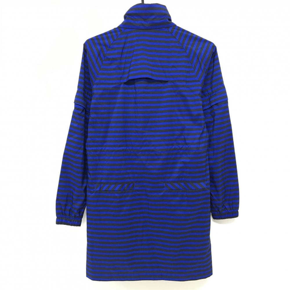 ルコック 2WAYロングジャケット ブルー×黒 ボーダー 袖着脱可 フード収納 メッシュ裏地 レディース M ゴルフウェア le coq sportif