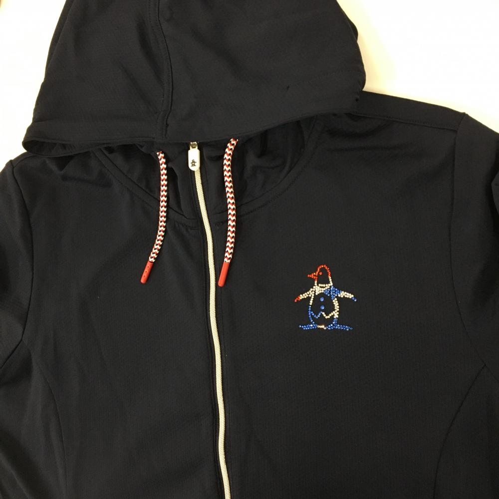 マンシングウェア ジップパーカー 織生地 ラインストーンロゴ レディース M ゴルフウェア Munsingwear