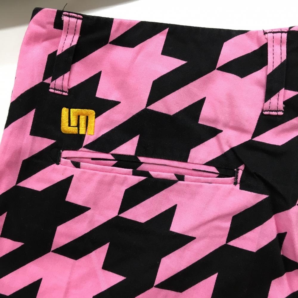 ラウドマウス パンツ ピンク×黒 総柄 バックロゴ メンズ 34×32L ゴルフウェア LOUDMOUTH