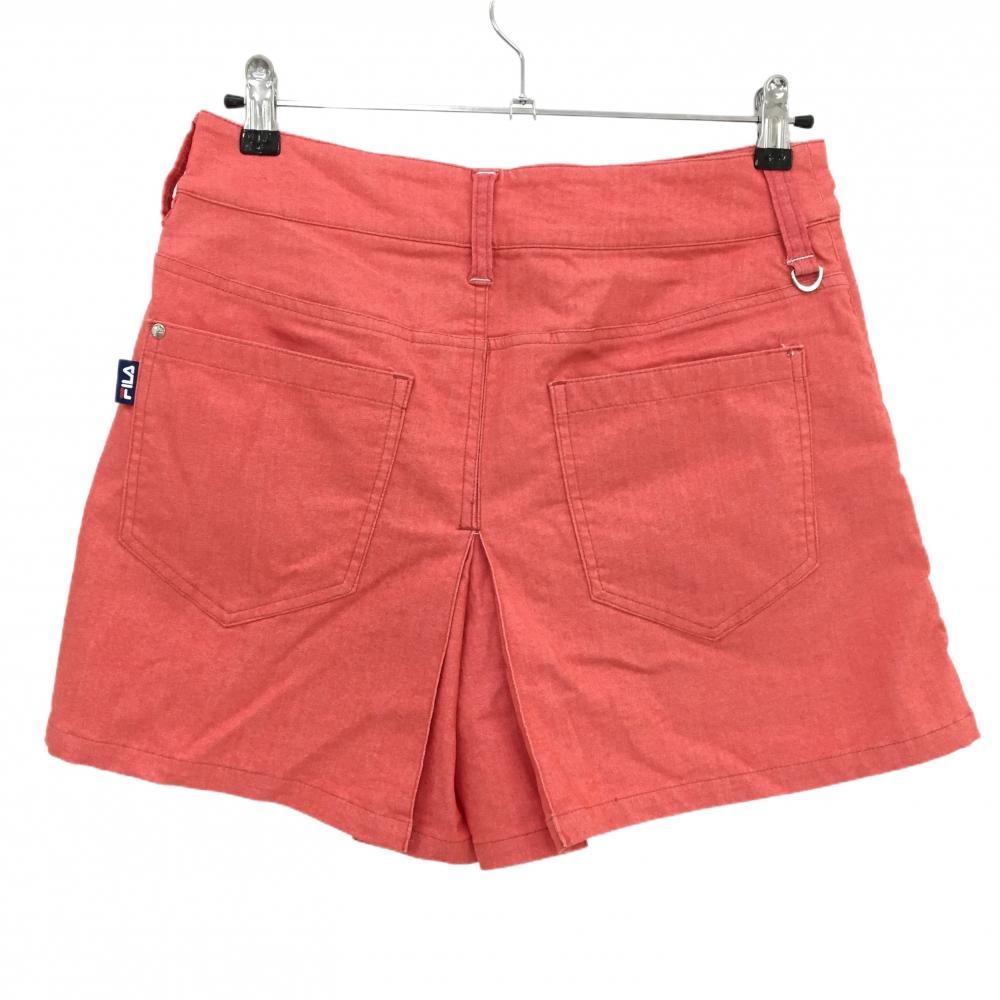 【超美品】フィラゴルフ キュロットスカート サーモンピンク×白 ワッペン レディース ゴルフウェア FILA GOLF