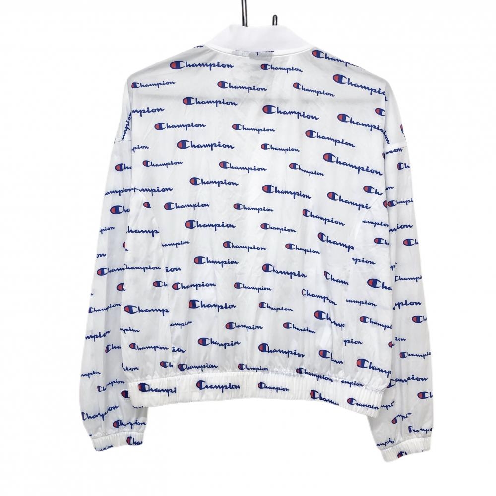 【美品】チャンピオン ジャケットブルゾン 白×ブルー ロゴ総柄 薄手 レディース M ゴルフウェア Champion