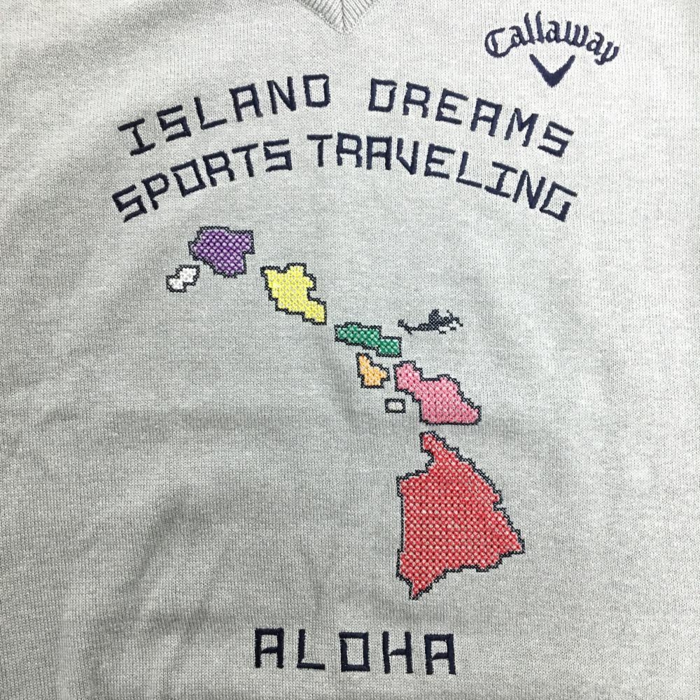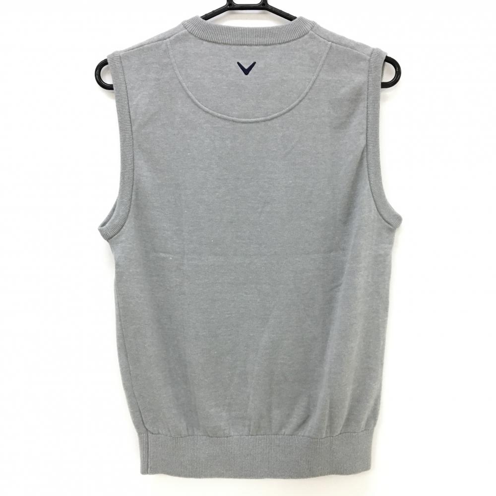 【超美品】キャロウェイ ニットベスト グレー×ネイビー コットン混 Vネック メンズ M ゴルフウェア Callaway