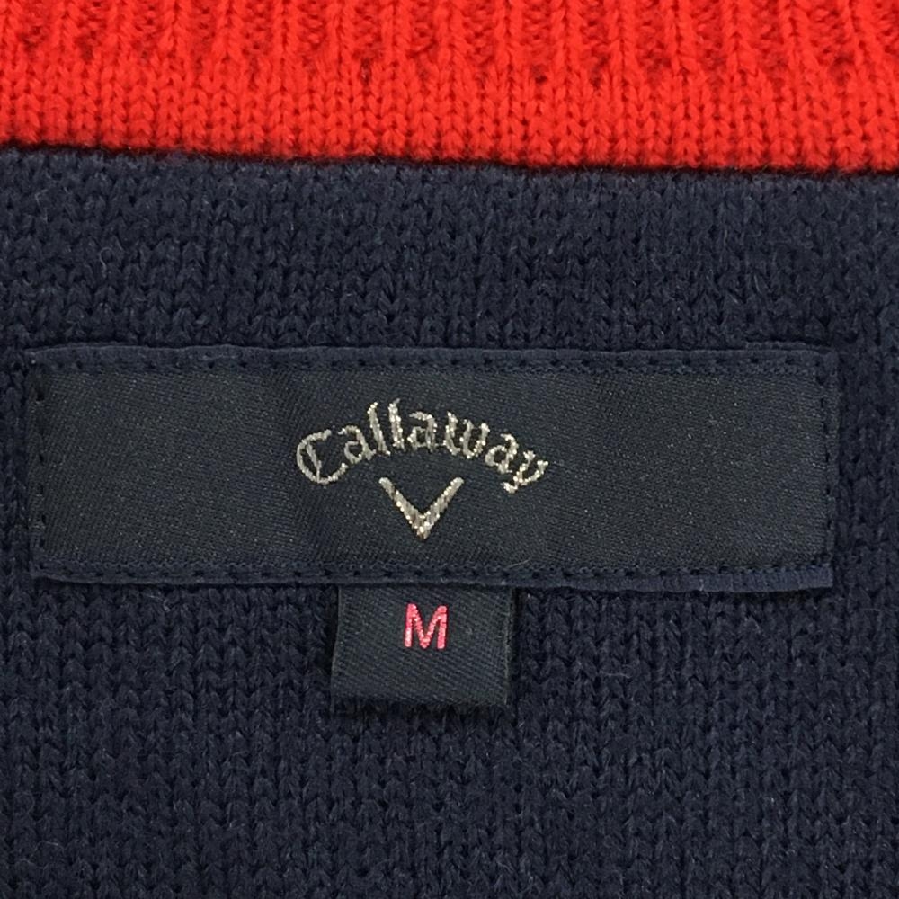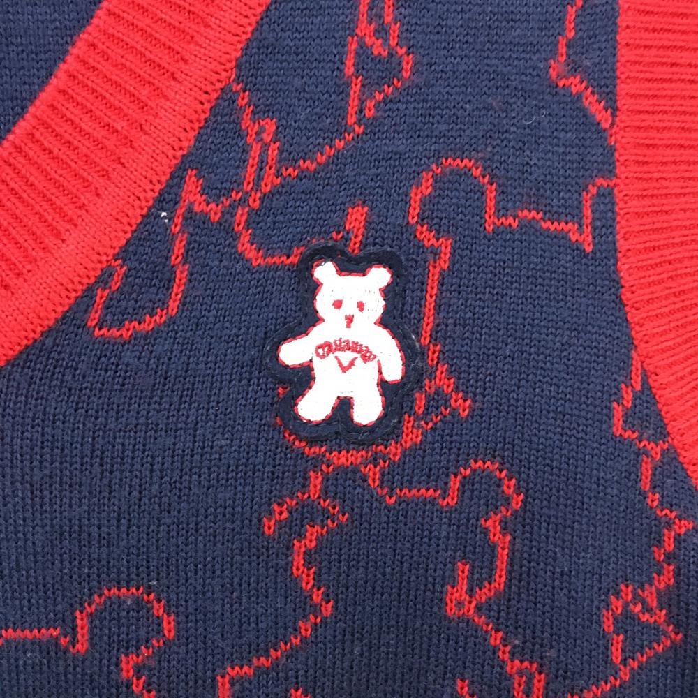 【超美品】キャロウェイ ニットベスト レッド×ネイビー ベアー総柄 ウール混 レディース M ゴルフウェア Callaway