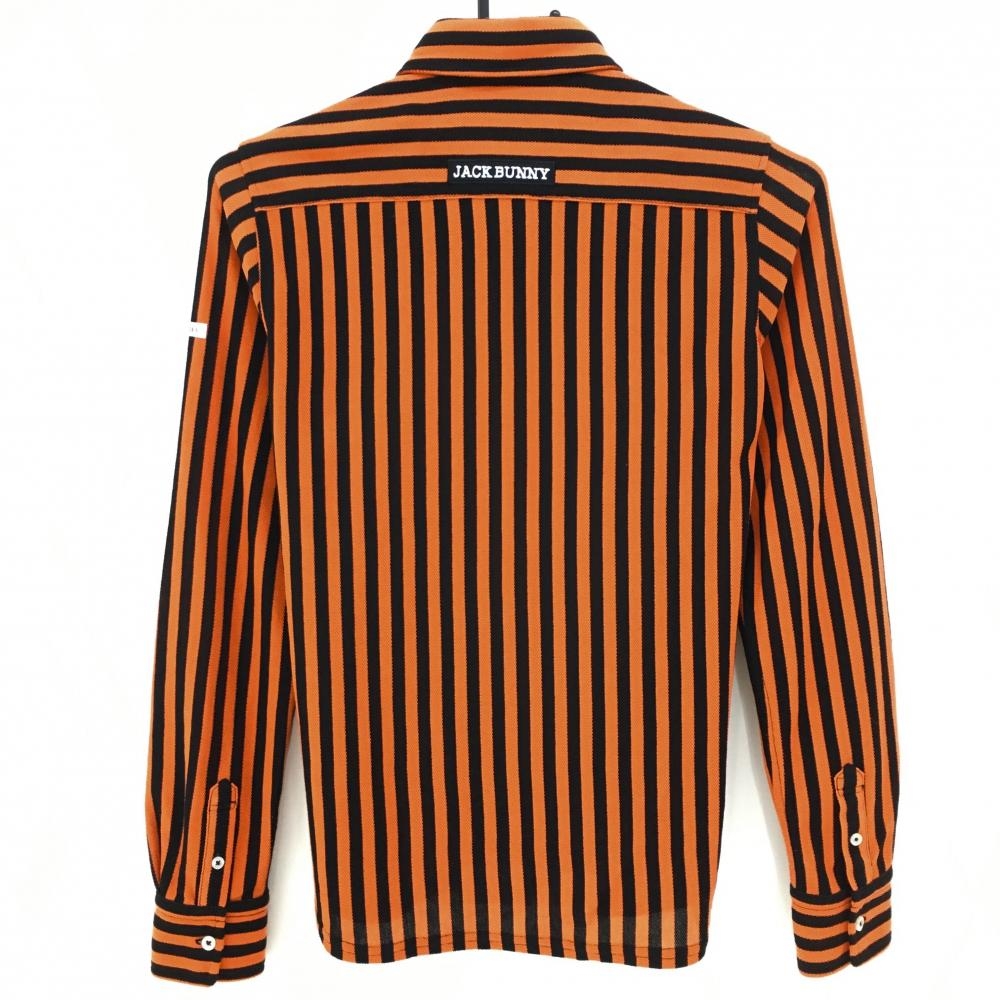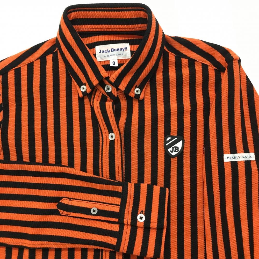 【超美品】ジャックバニー 長袖シャツ オレンジ×黒 ストライプ ボタンダウン レディース 0(S) ゴルフウェア Jack Bunny