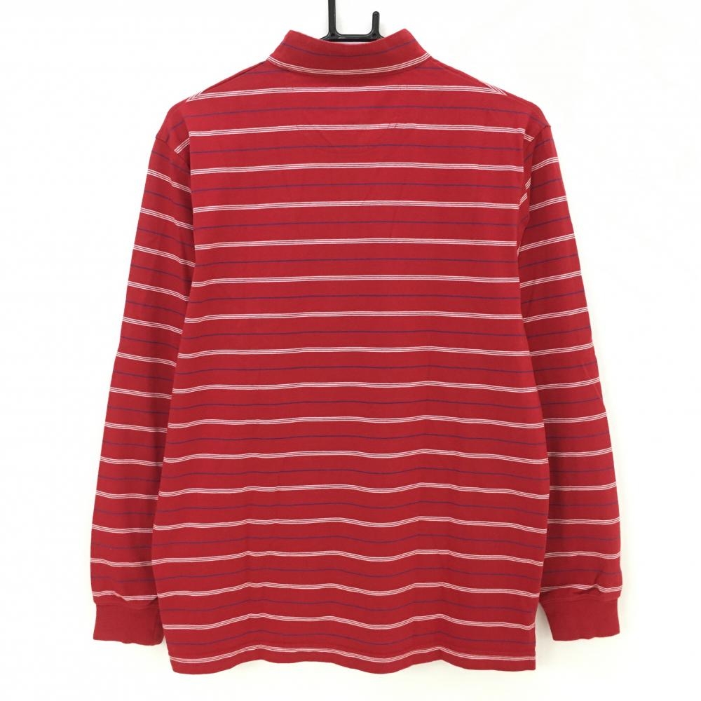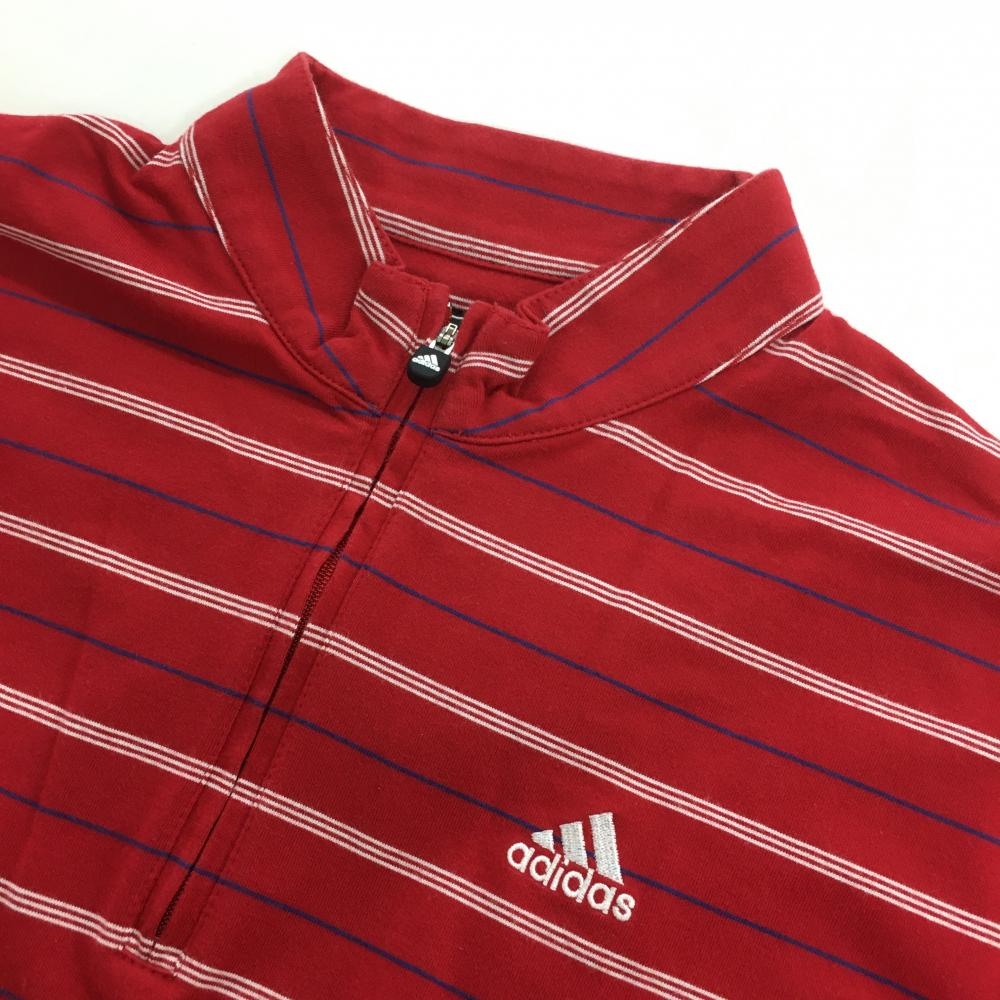 【美品】アディダス 長袖ハイネックシャツ レッド×白 ボーダー ハーフジップ メンズ L/G ゴルフウェア adidas