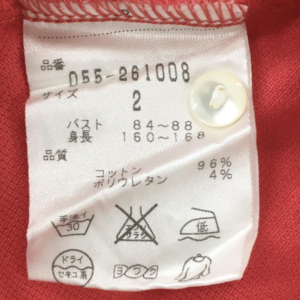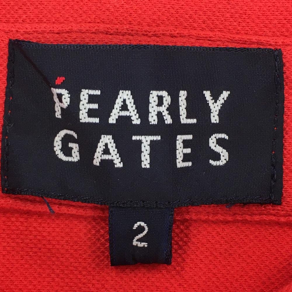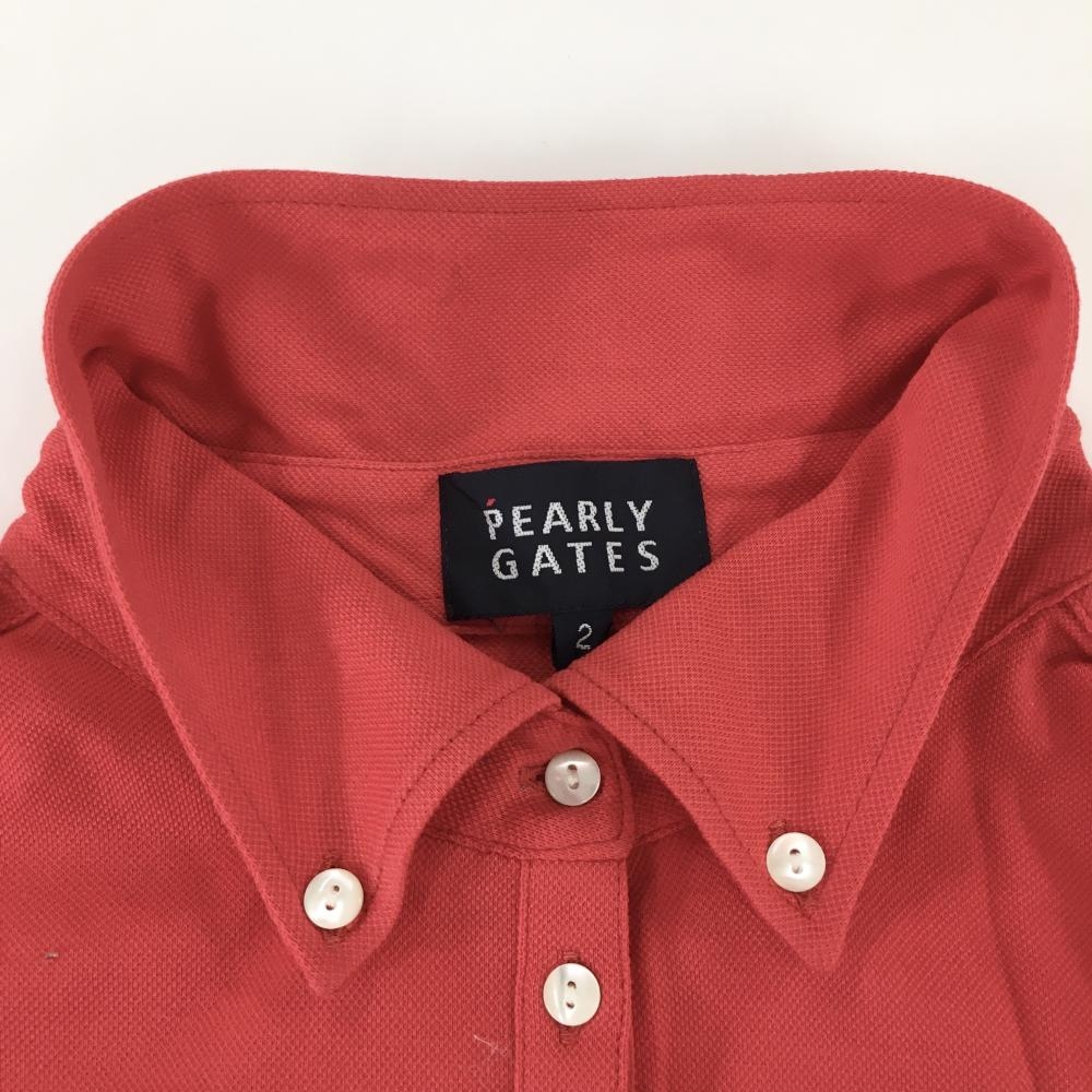 【美品】パーリーゲイツ 長袖ポロシャツ レッド ボタンダウン 胸ミニポケット レディース 2(L) ゴルフウェア PEARLY GATES