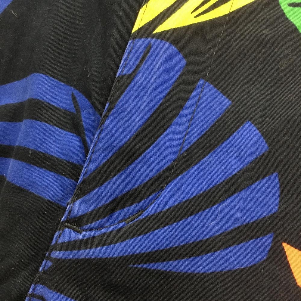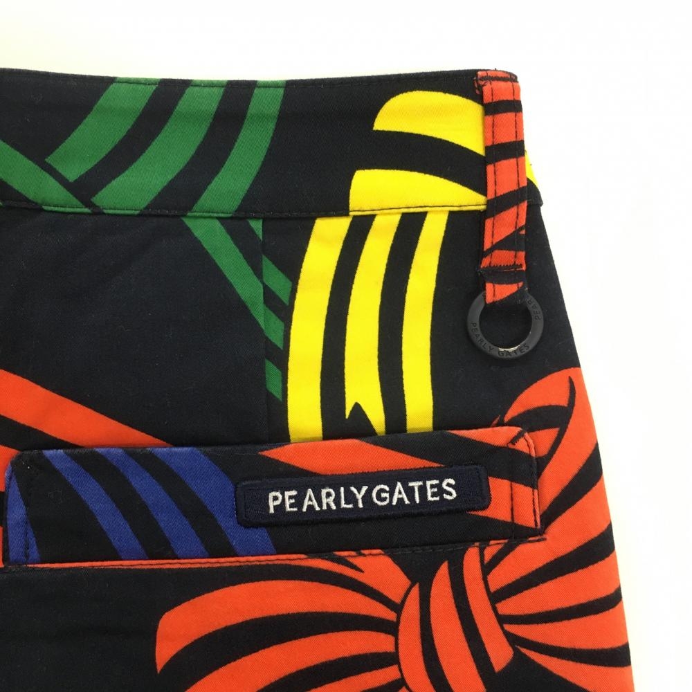 【美品】パーリーゲイツ パンツ 黒×イエロー×レッド リボン柄 レディース 00(XS) ゴルフウェア PEARLY GATES