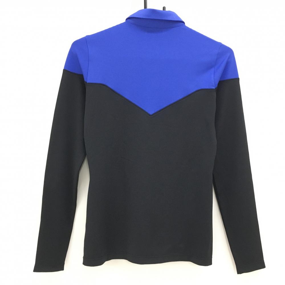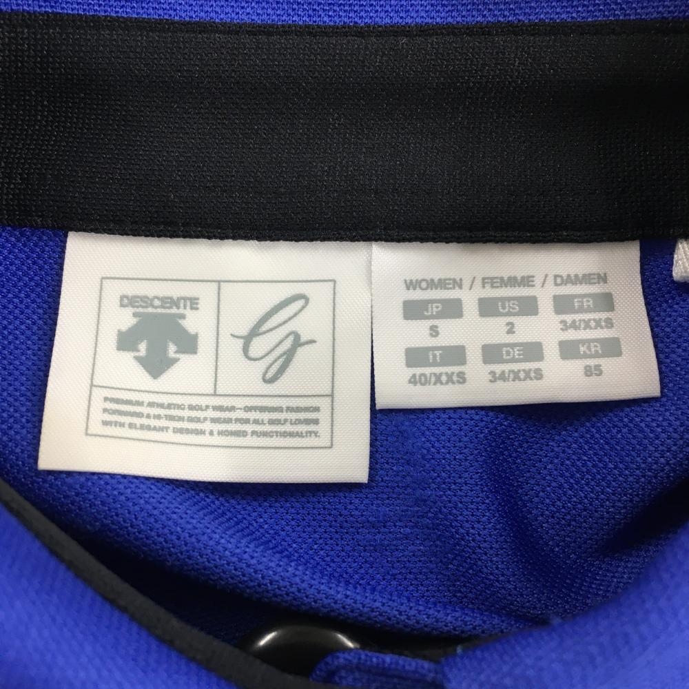 【超美品】デサントゴルフ 長袖ポロシャツ ブルー×黒 肩ロゴ 中田英寿 レディース S ゴルフウェア DESCENTE