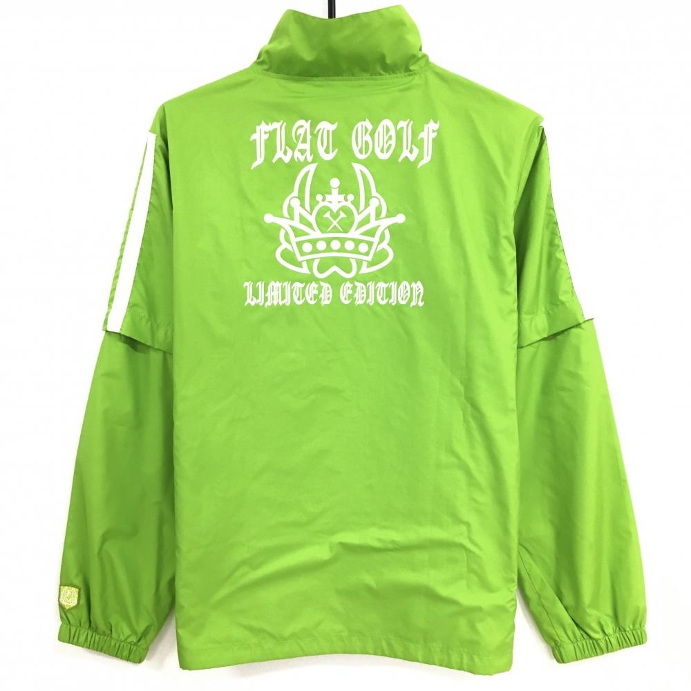 【美品】フラットゴルフ 2WAYブルゾン ライトグリーン×白 ハーフジップ 裏地付 袖着脱可 レディース L ゴルフウェア FLATGOLF