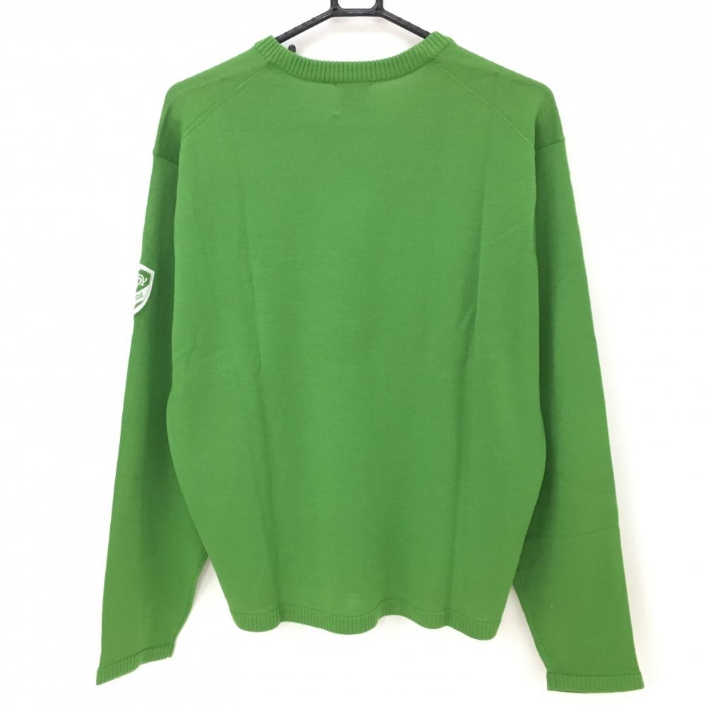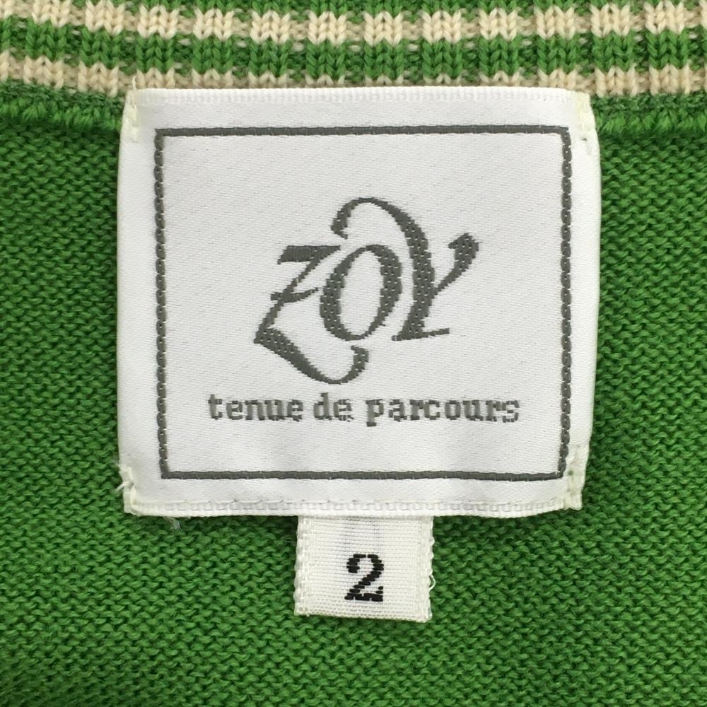 【美品】ゾーイ セーター ライトグリーン×白 胸元ライン ウール100% Vネック ニット メンズ 2(M) ゴルフウェア ZOY