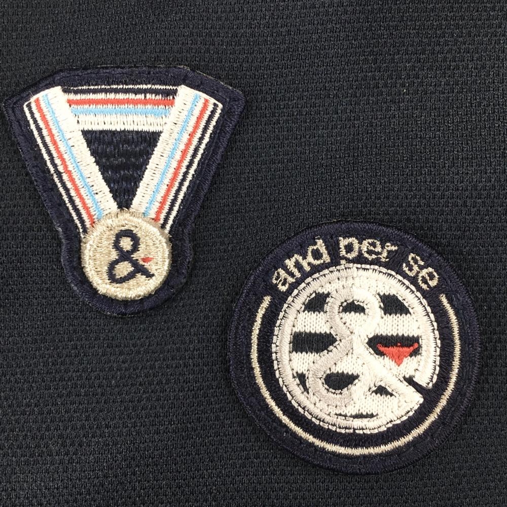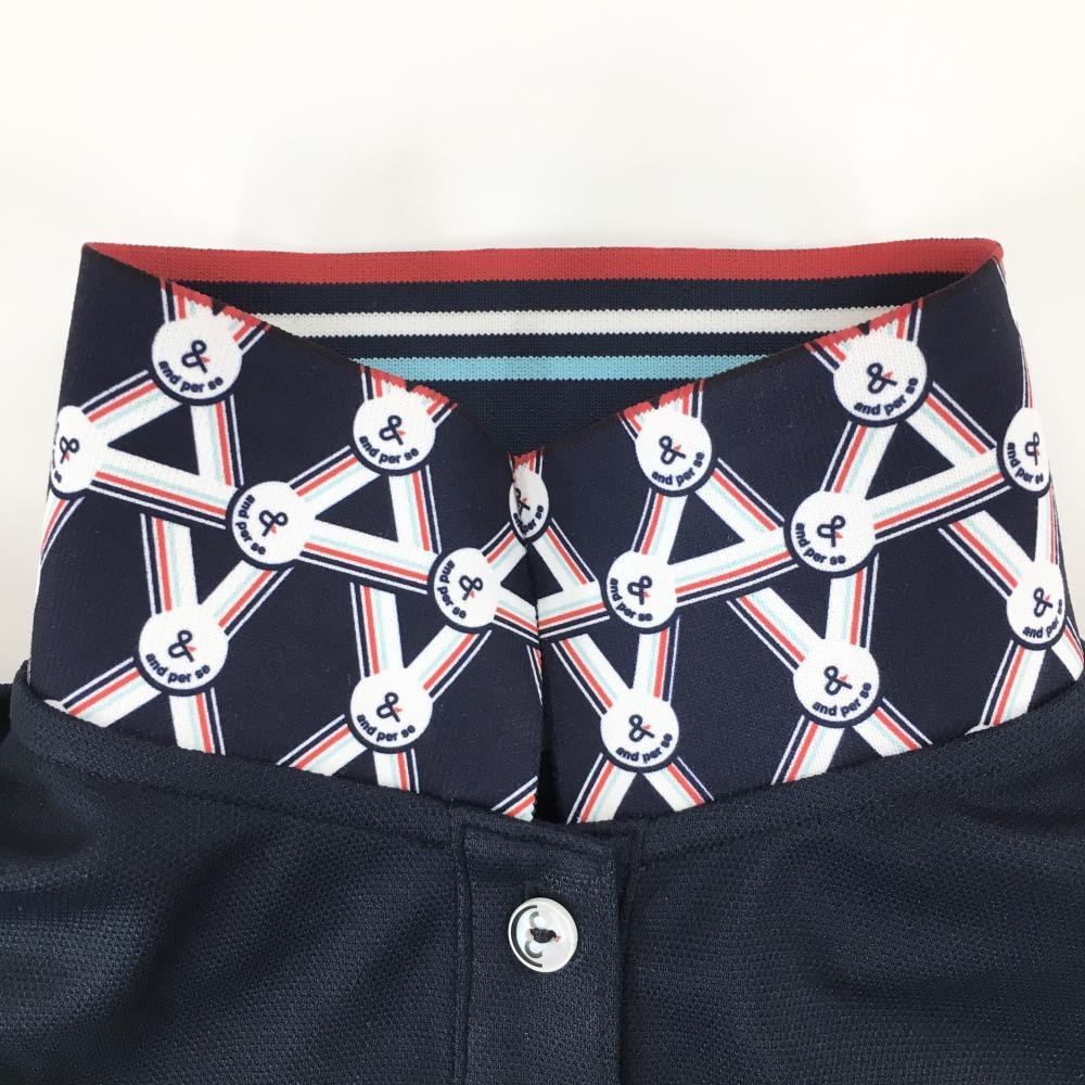【超美品】アンパスィ 長袖ポロシャツ ネイビー×レッド 襟ライン 襟裏総柄 レディース S ゴルフウェア and per se