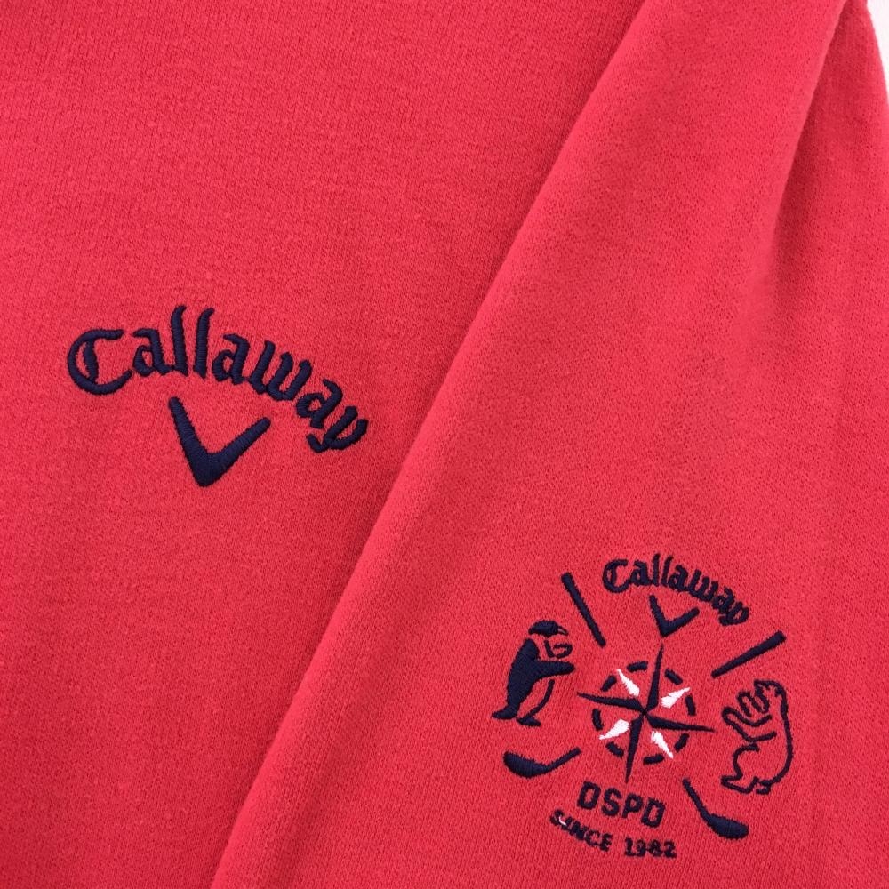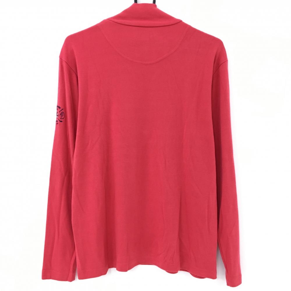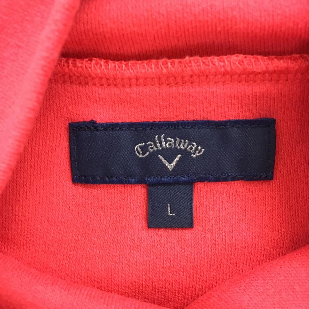 【美品】キャロウェイ 長袖ハイネックシャツ レッド×ネイビー 表微起毛 アクリル混 メンズ L ゴルフウェア Callaway