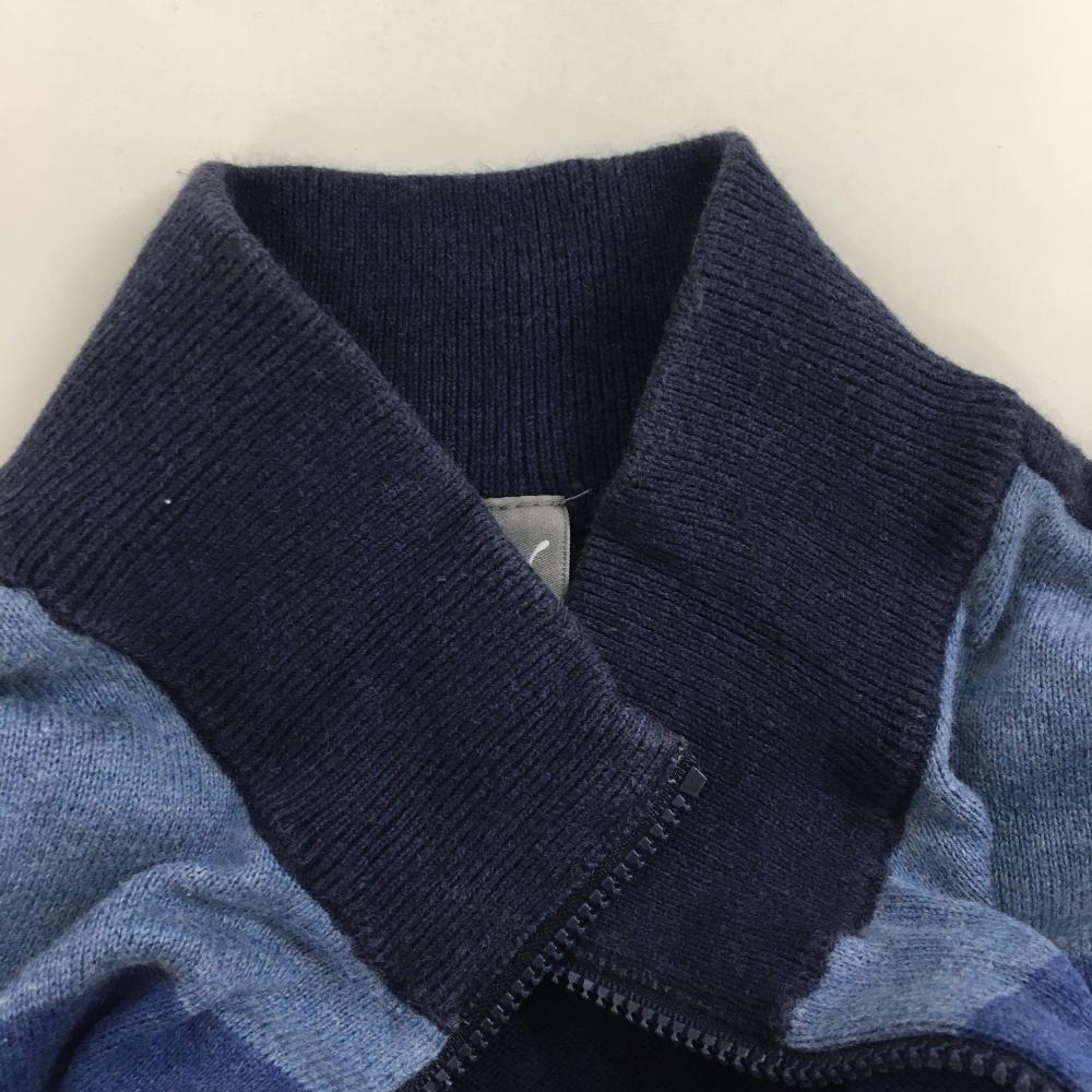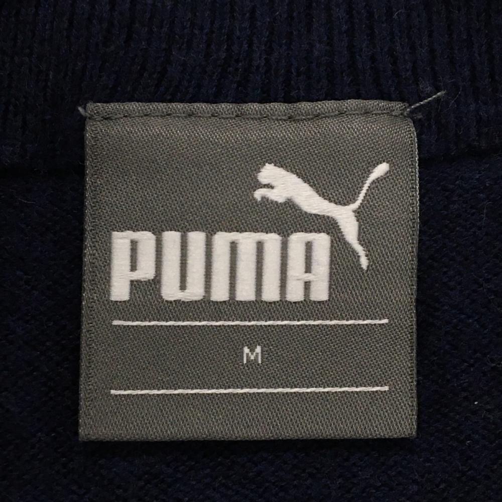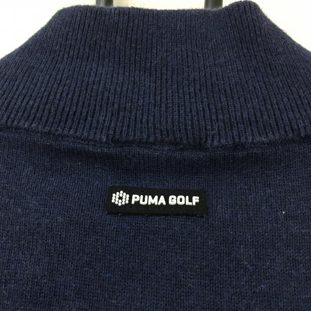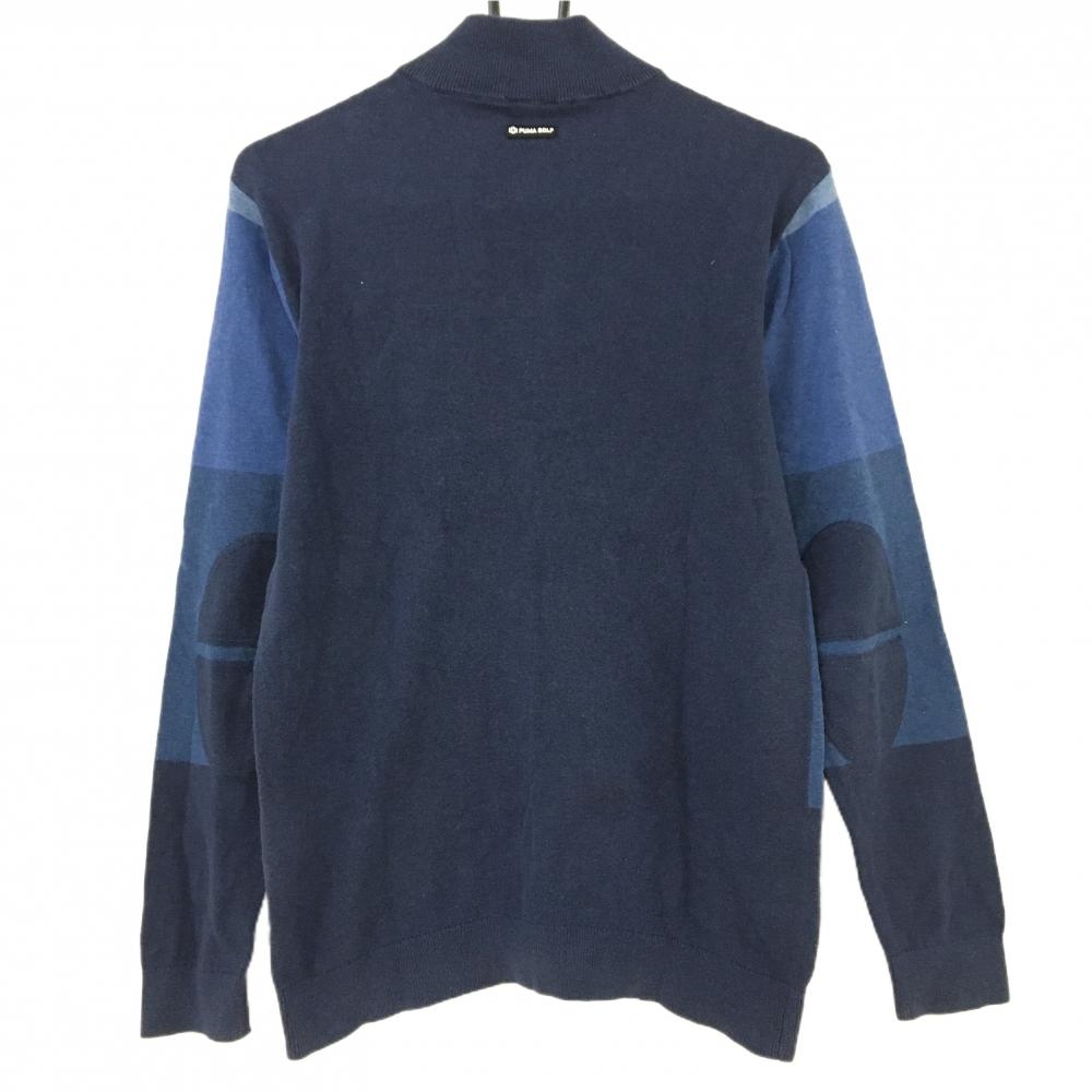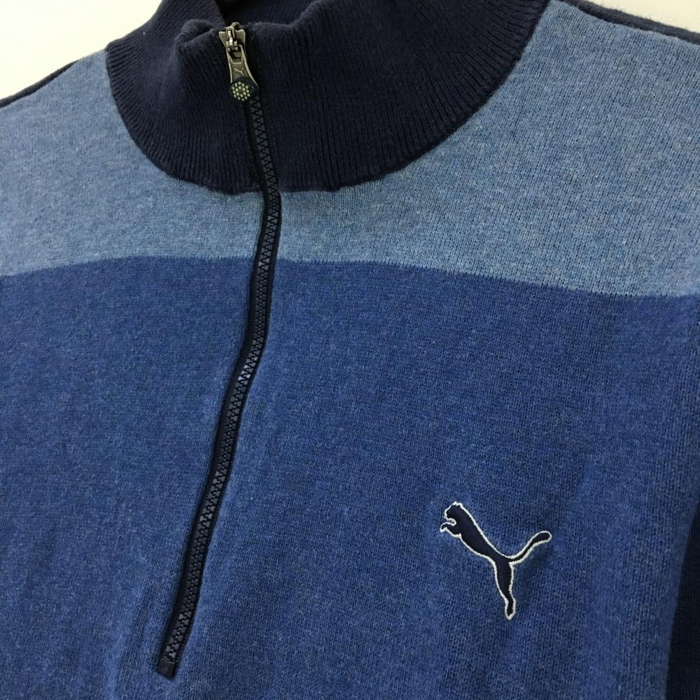 プーマ セーター ブルー×ネイビー ハーフジップ ロゴ刺しゅう コットン100% ニット メンズ M ゴルフウェア PUMA