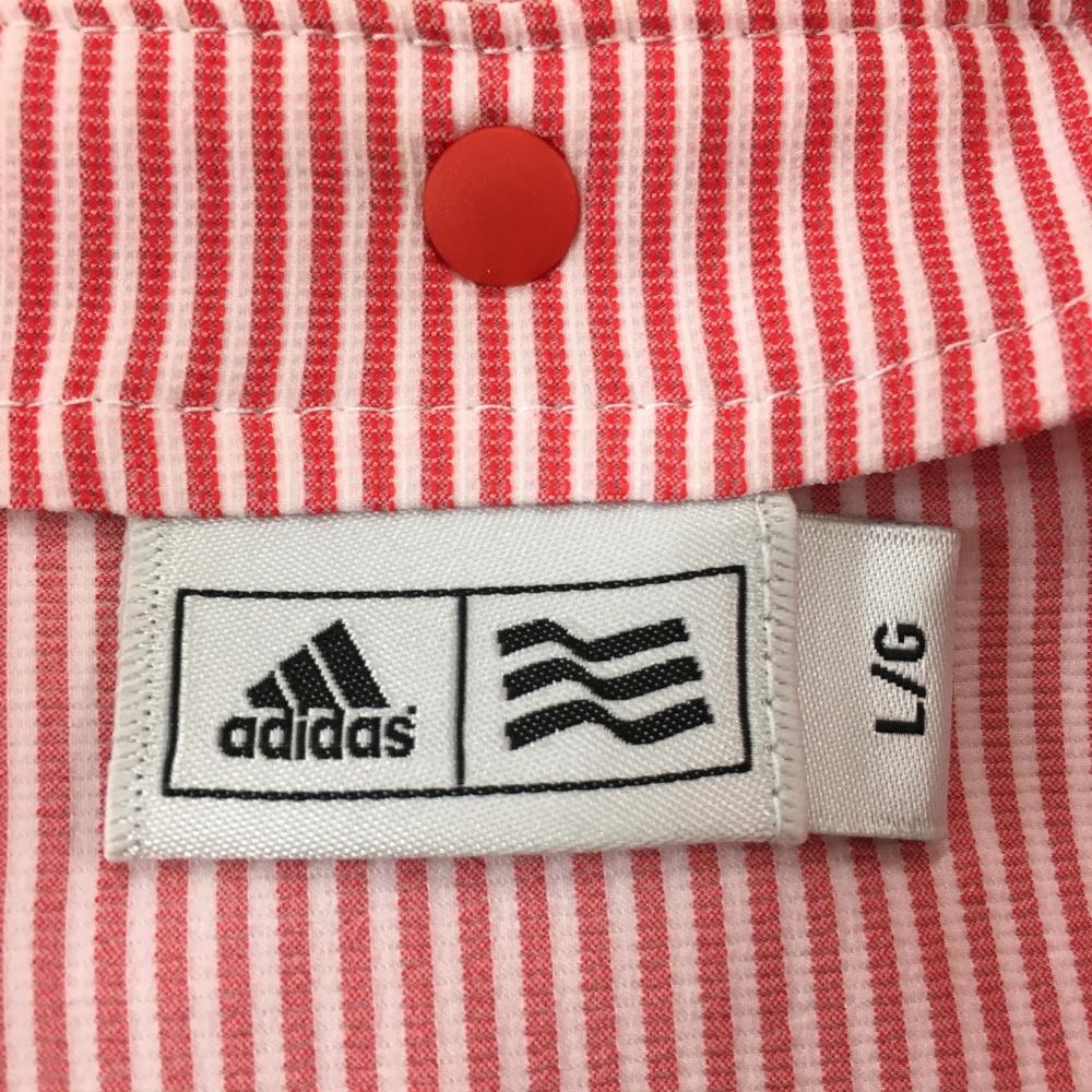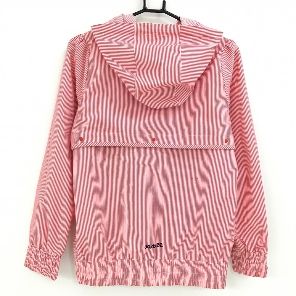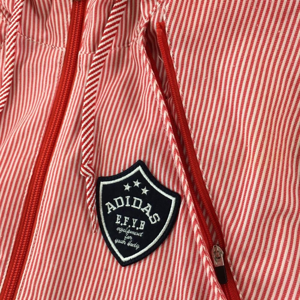 【美品】アディダス 2WAYジップパーカー レッド×白 ストライプ 袖・フード着脱可 ロゴワッペン レディース L/G ゴルフウェア adidas
