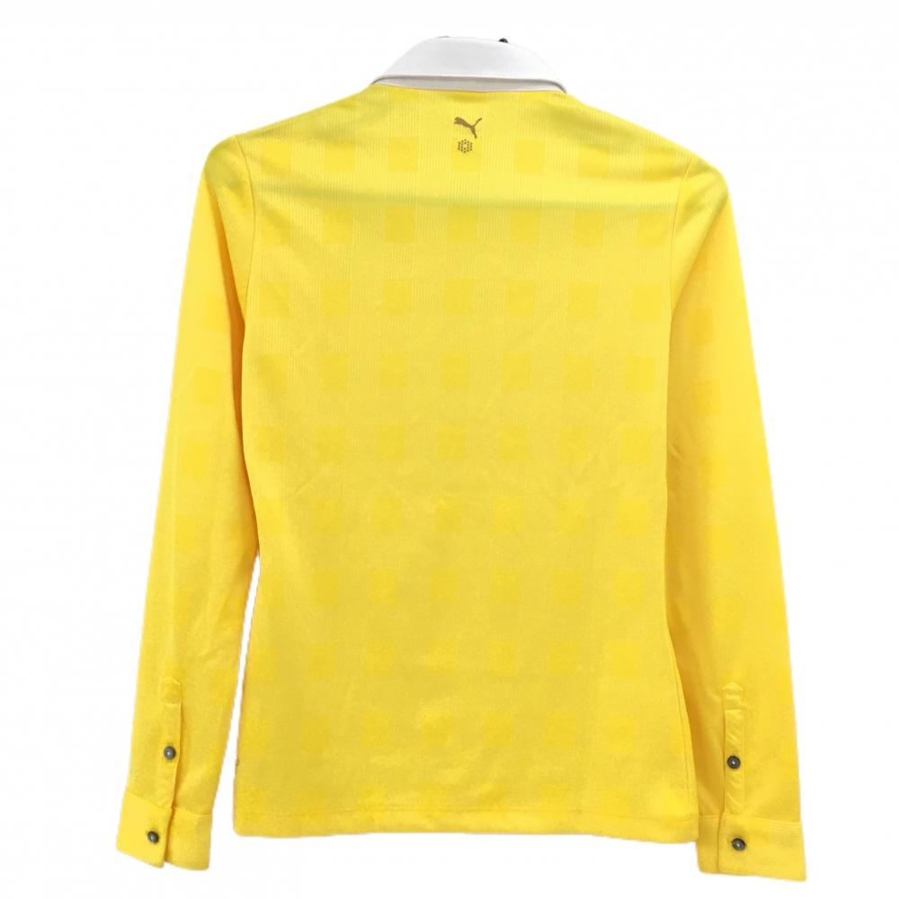 プーマ 長袖ポロシャツ イエロー×白 チェック織生地 DRYCELL レディース M ゴルフウェア PUMA