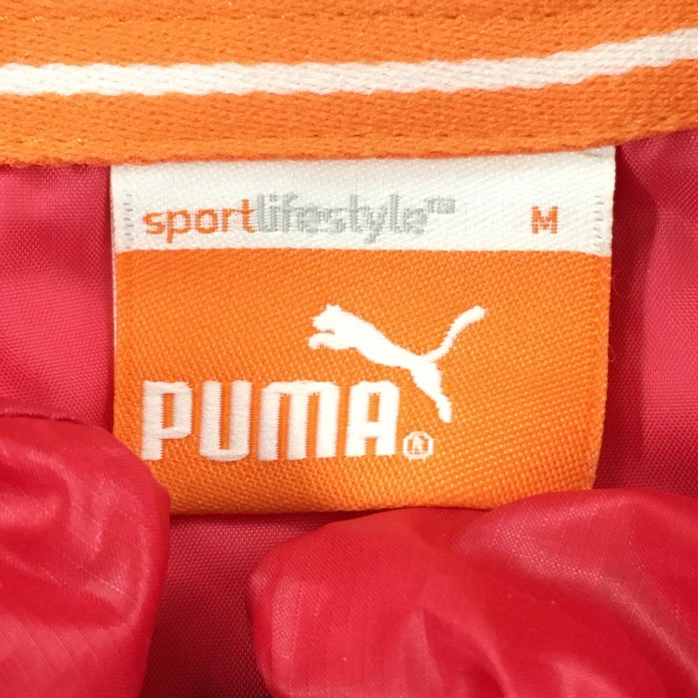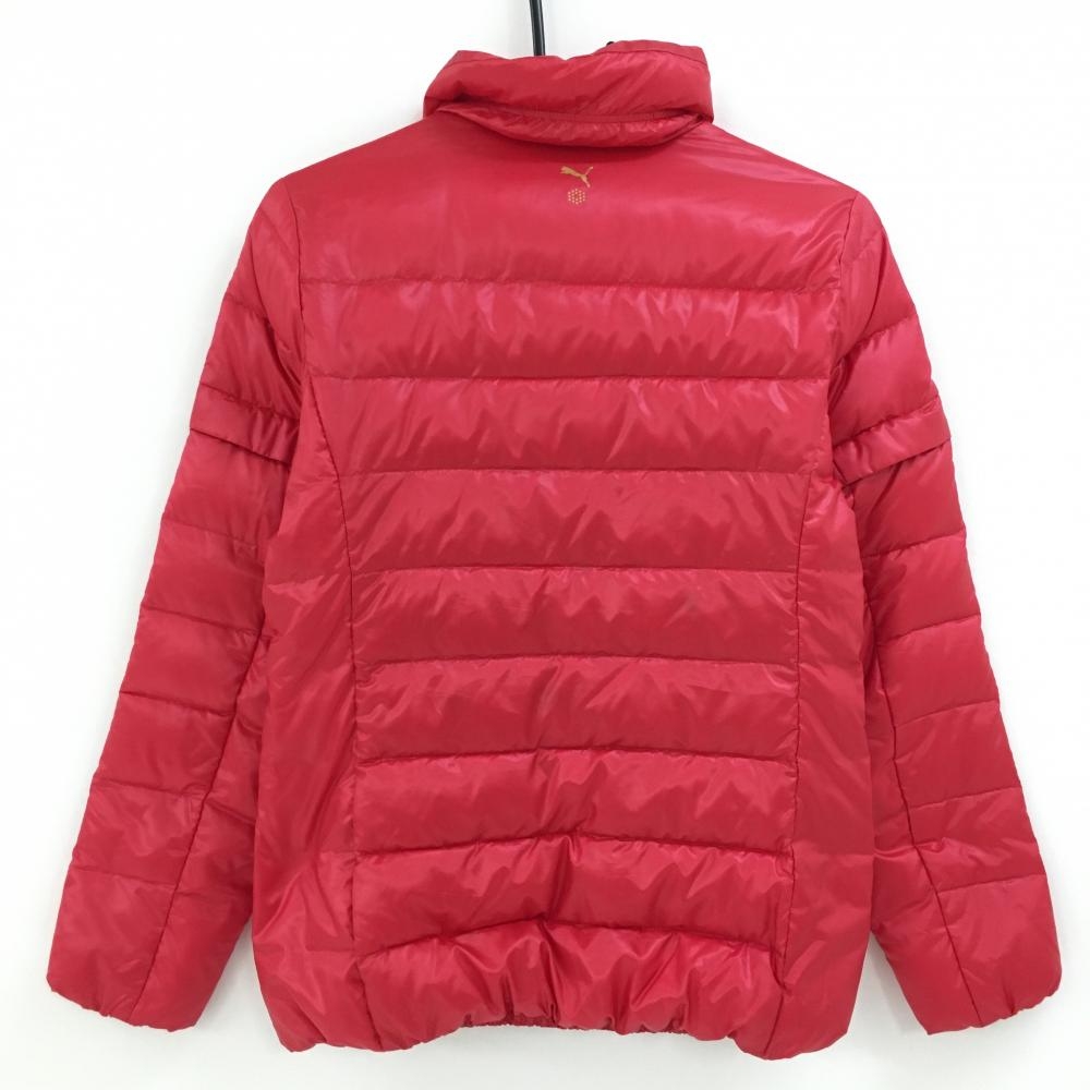 【美品】プーマ 2WAYダウンジャケット ピンクレッド ロゴ刺しゅう 袖着脱可 レディース M ゴルフウェア サンプル品 PUMA