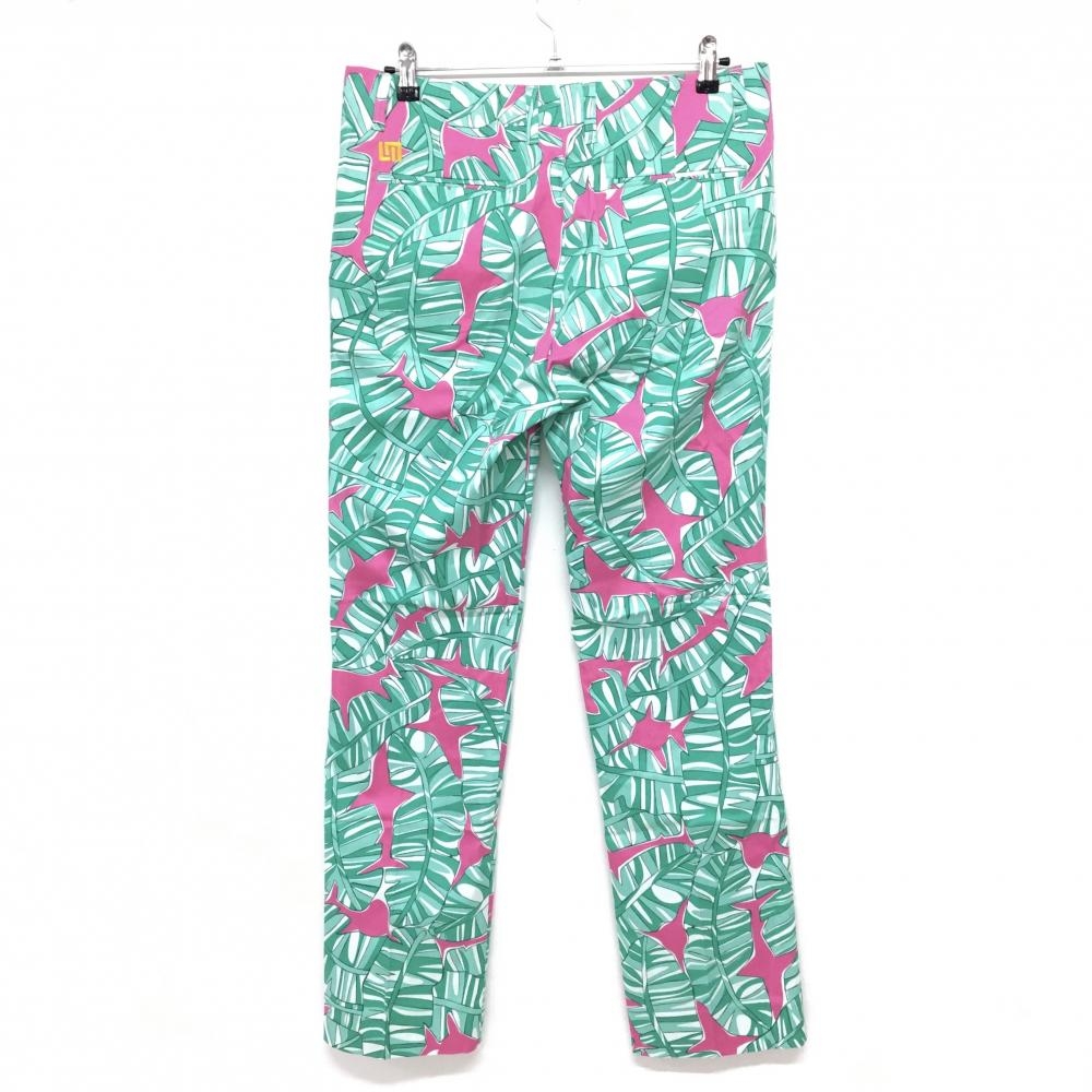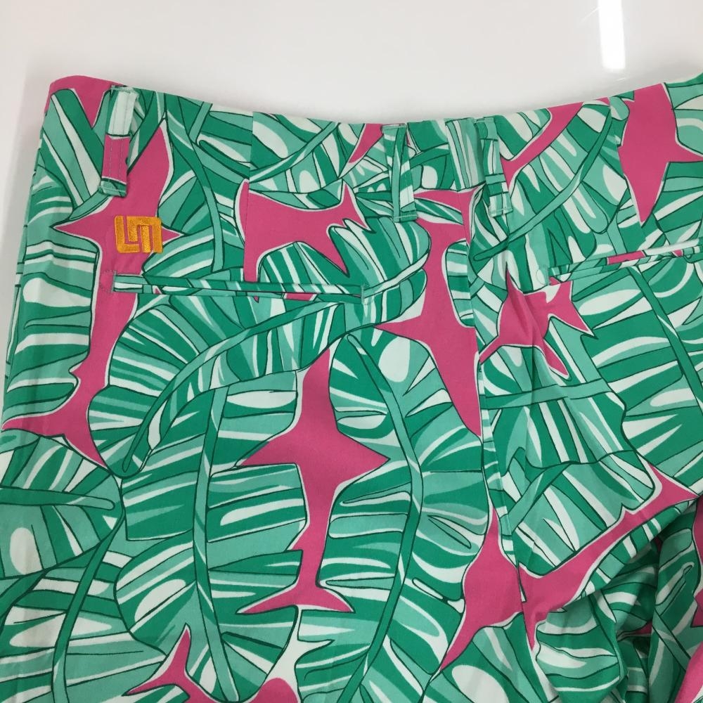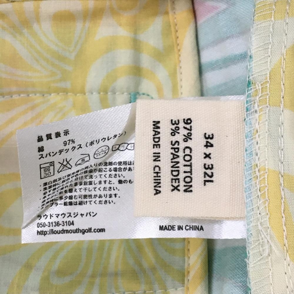 【超美品】ラウドマウス パンツ グリーン×ピンク 総柄 サメ バックロゴ メンズ 34×32L ゴルフウェア LOUDMOUTH