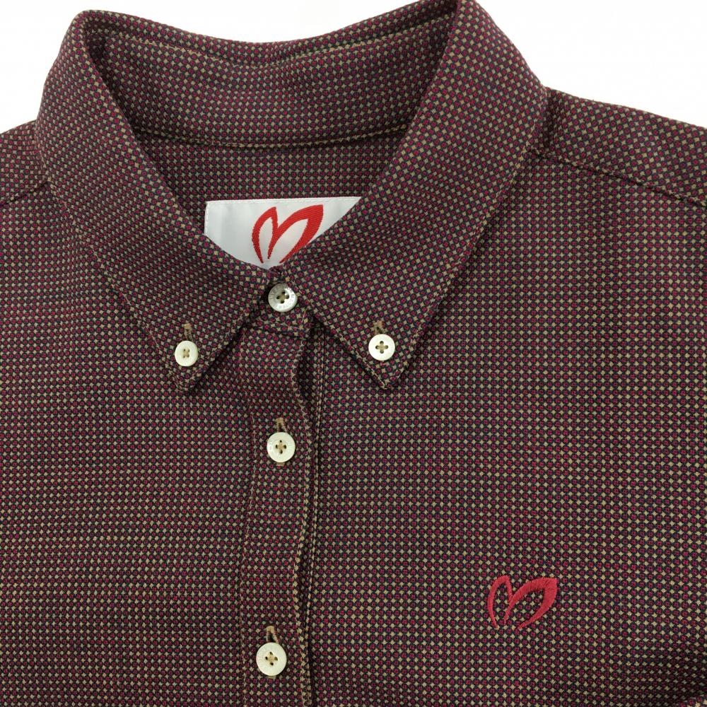 【超美品】マスターバニー 長袖ポロワンピース ボルドー×ベージュ ドット レディース 0(S) ゴルフウェア MASTER BUNNY EDITION