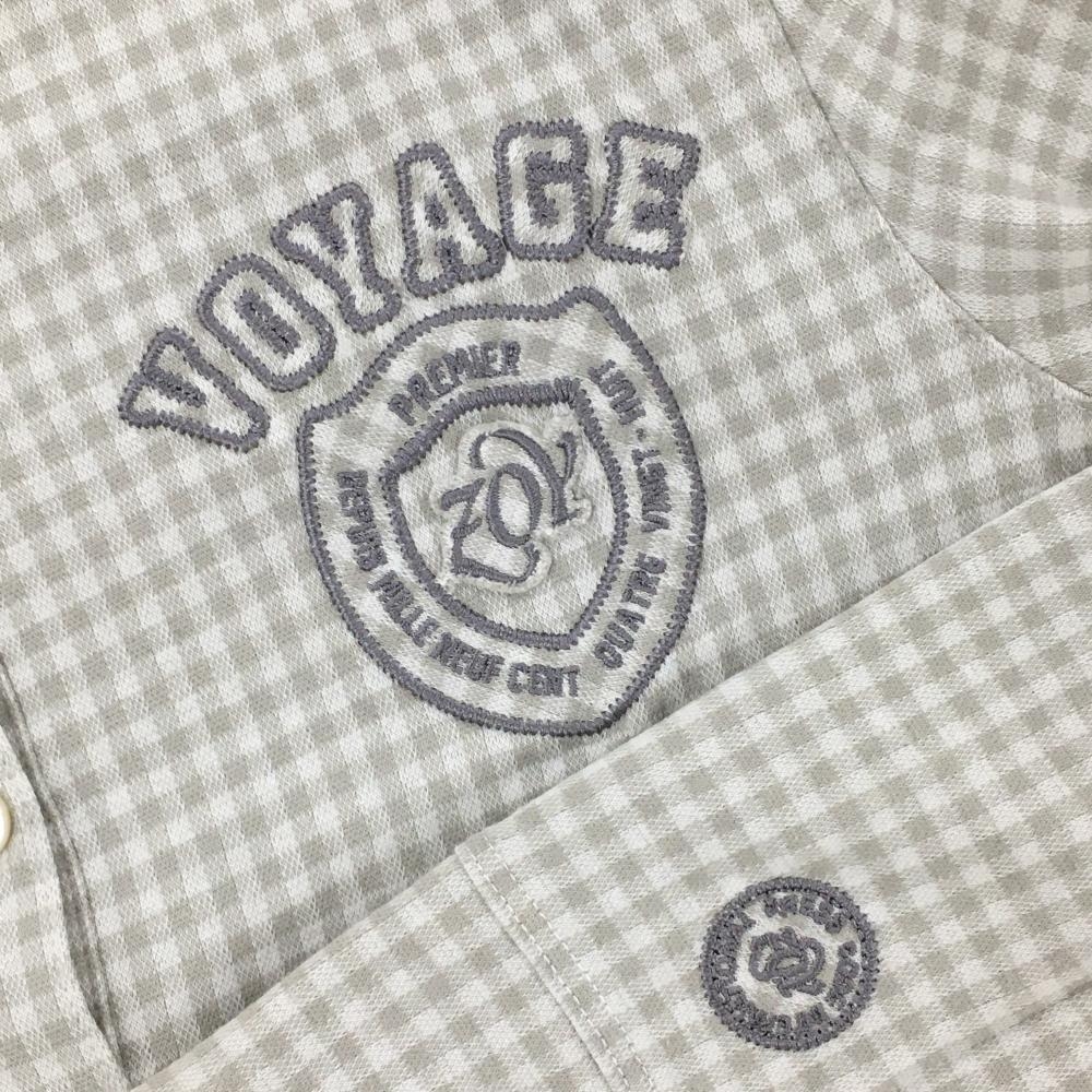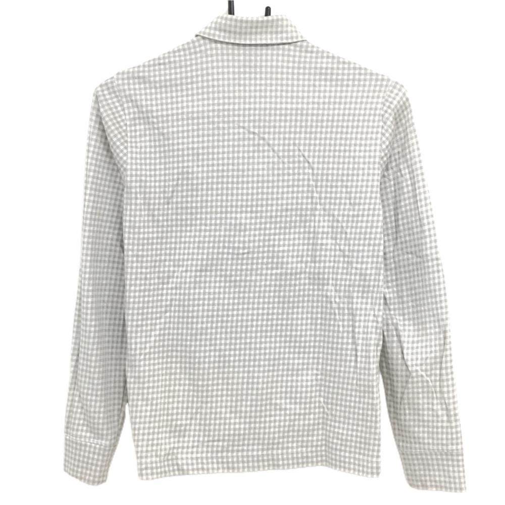 【美品】ゾーイ 長袖ポロシャツ ライトグレー×白 ギンガムチェック コットン混 レディース 40(L) ゴルフウェア ZOY