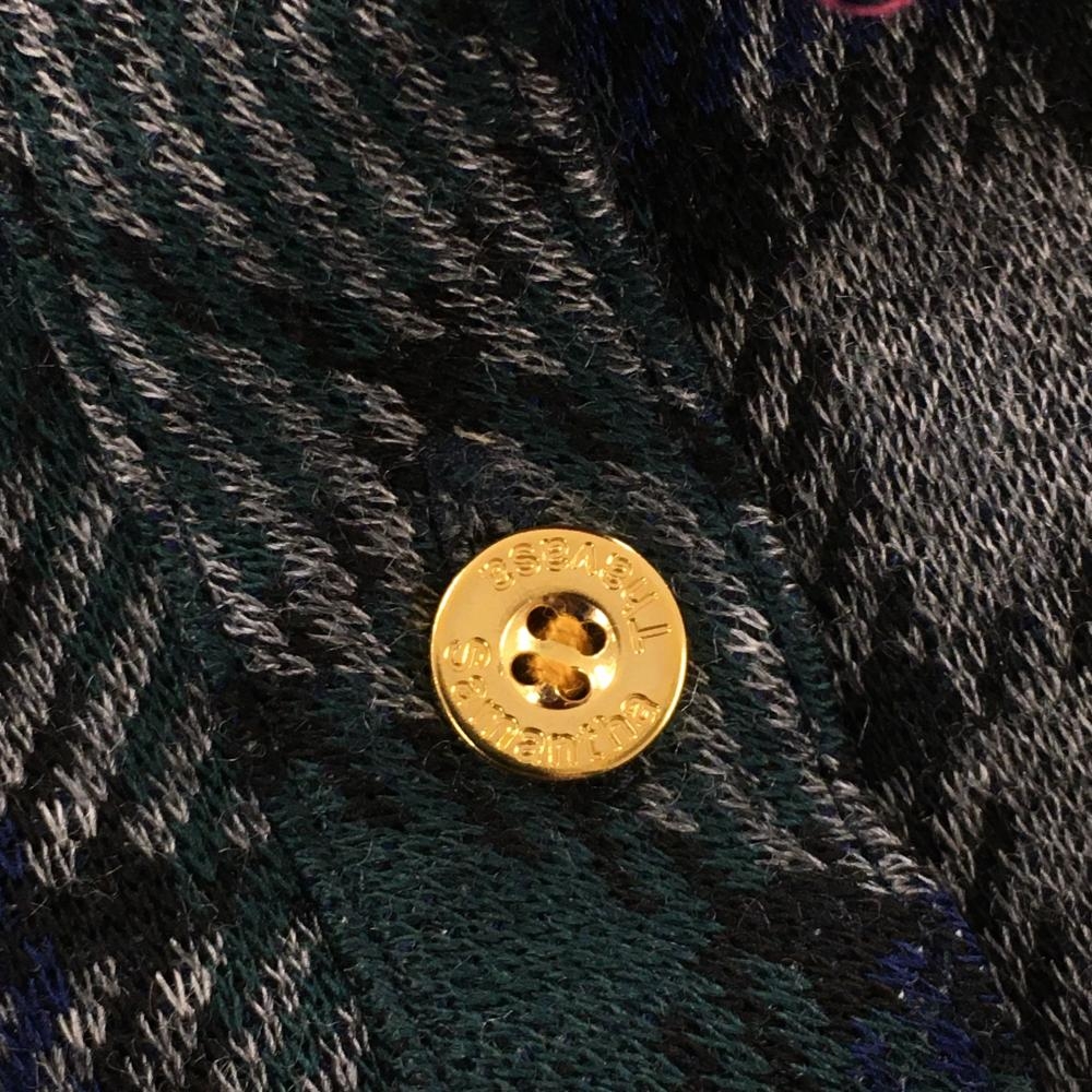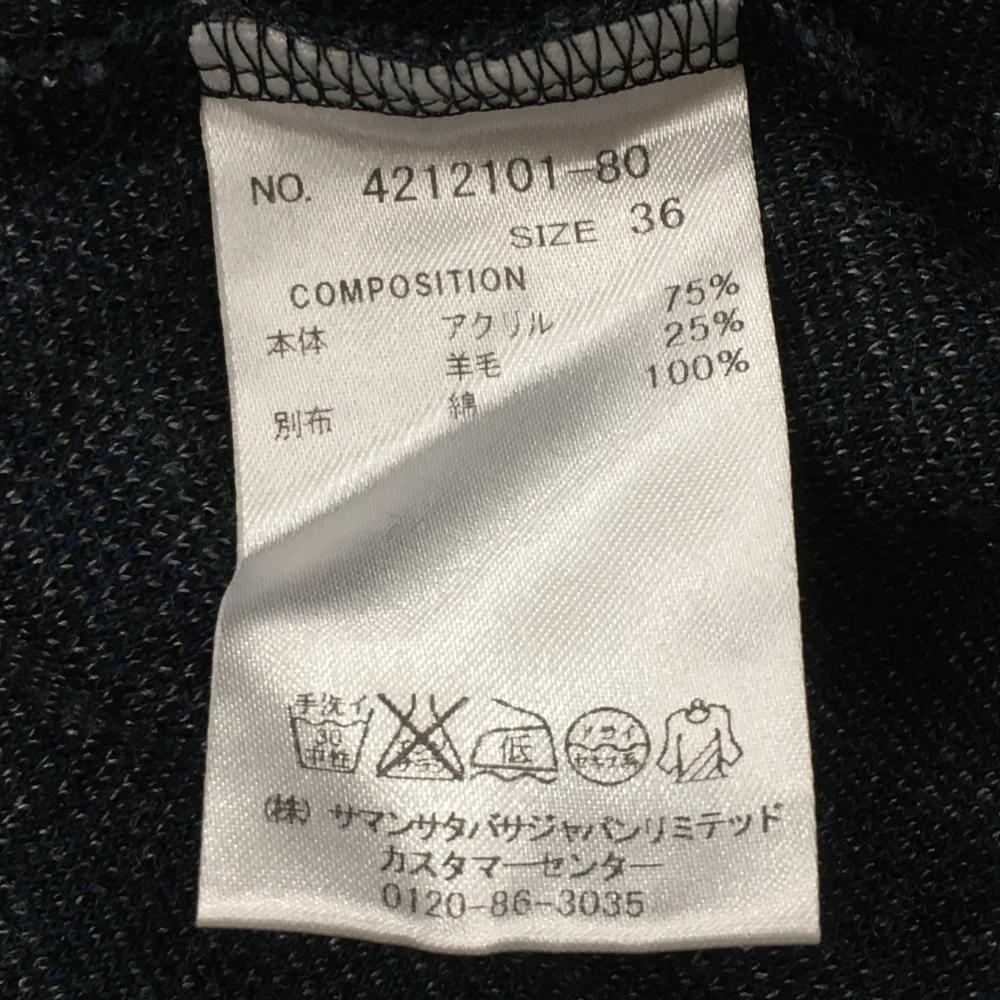 【超美品】サマンサタバサ No.7 ニット長袖ポロシャツ グリーン×ネイビー チェック レディース 36(S) ゴルフウェア Samantha Thavasa