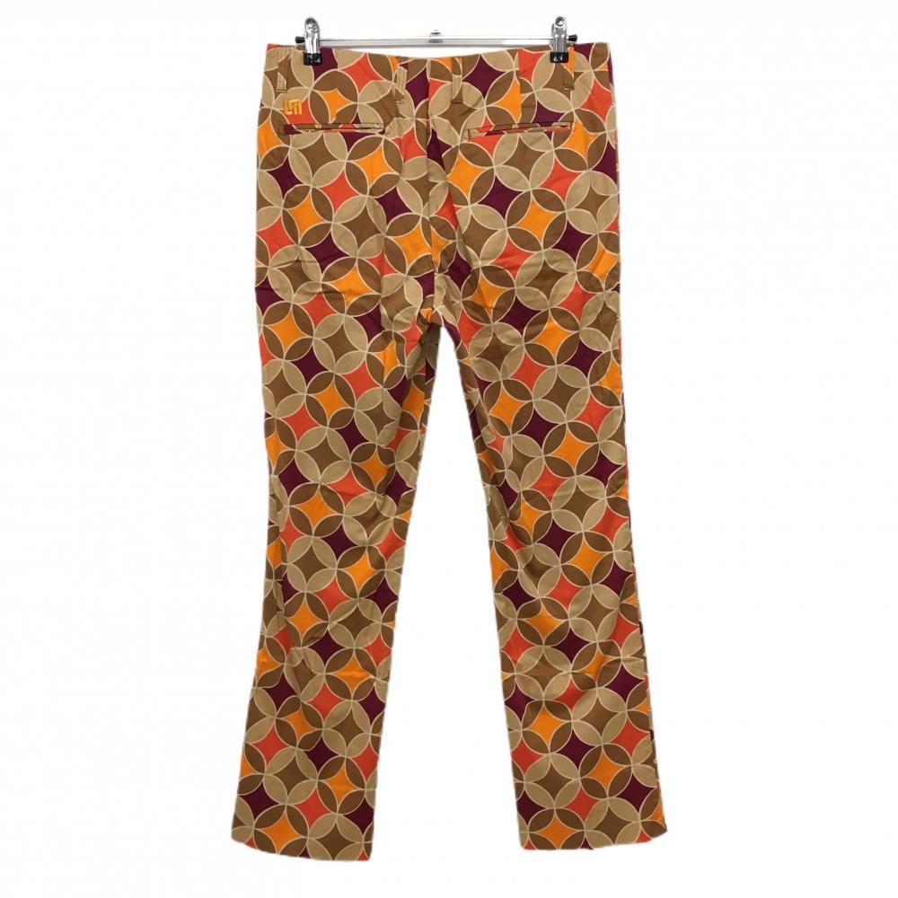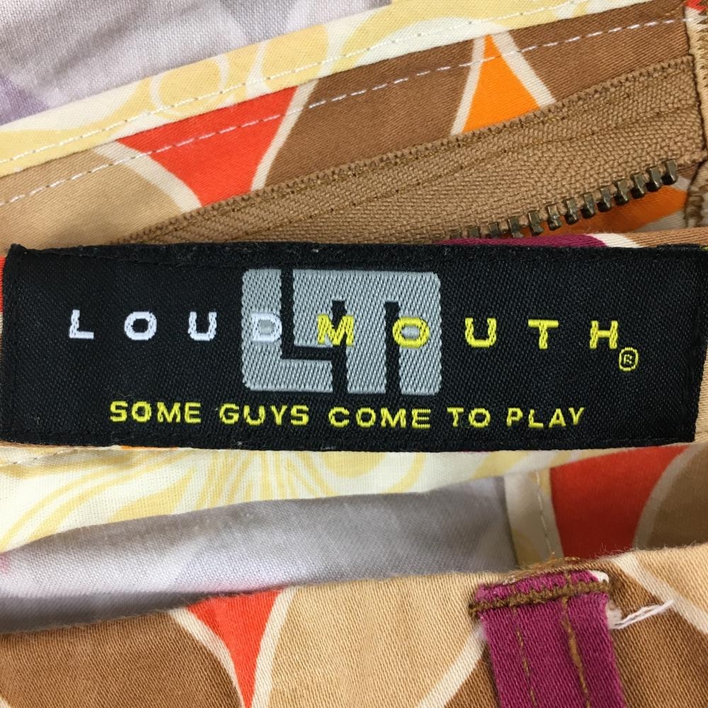 【美品】ラウドマウス パンツ ベージュ×ブラウン 総柄 バックロゴ メンズ 34×UF ゴルフウェア LOUDMOUTH