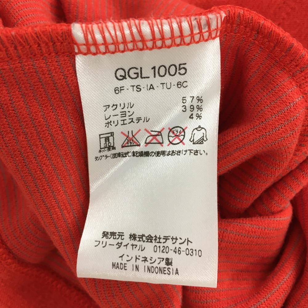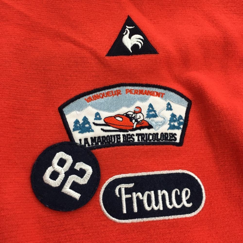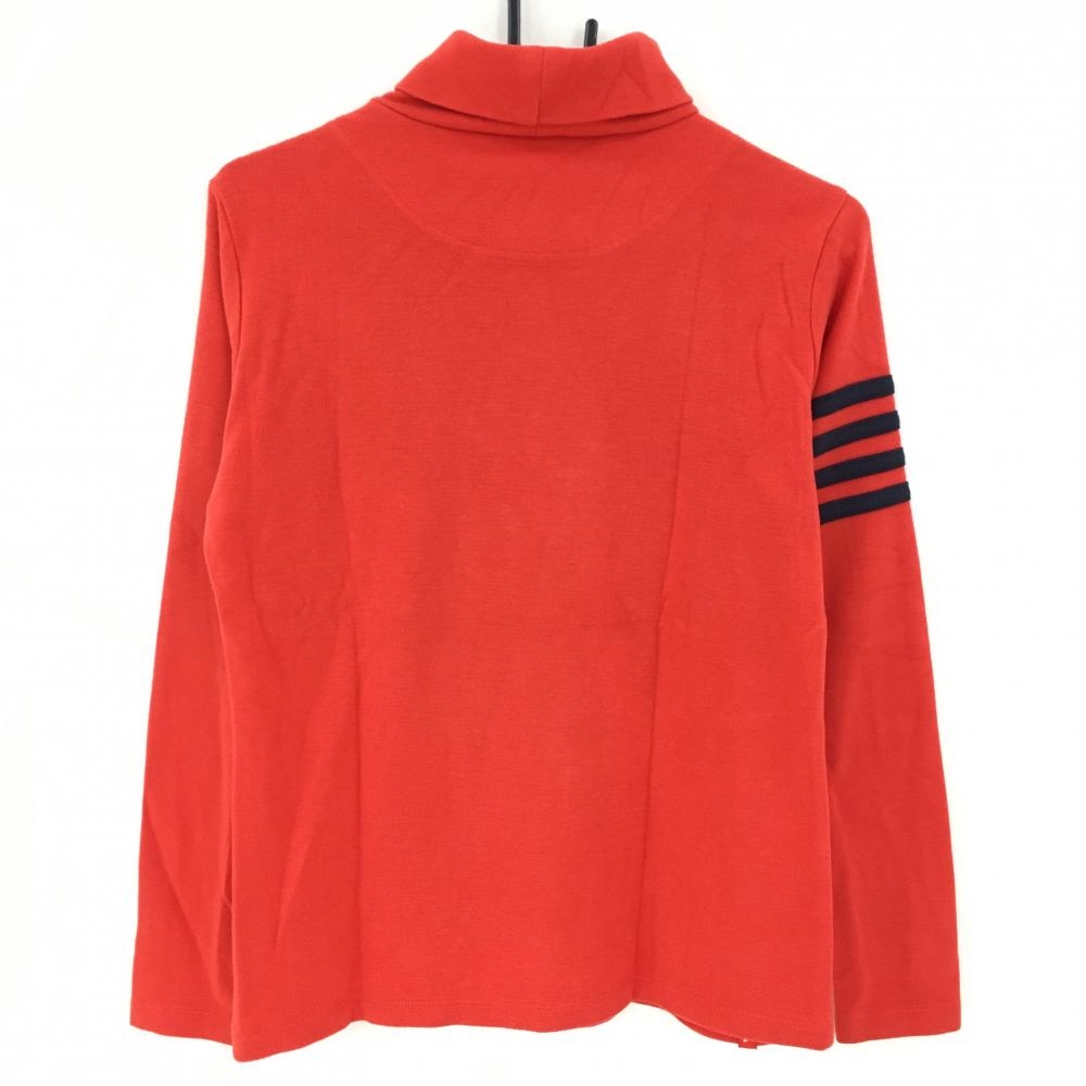 【美品】ルコック 長袖ハイネックシャツ レッド×ネイビー ロゴ刺しゅう ワッペン 表微起毛 レディース L ゴルフウェア le coq sportif