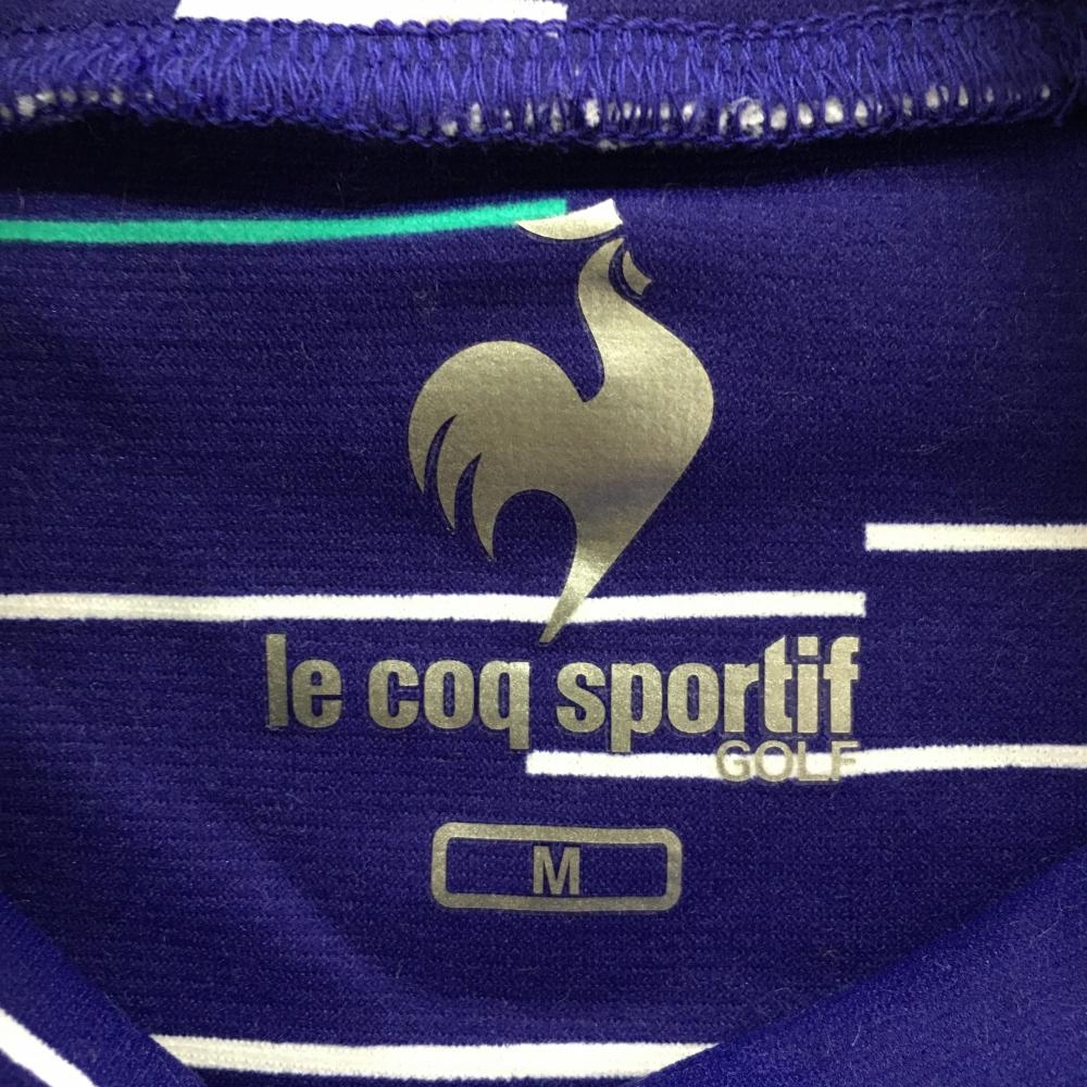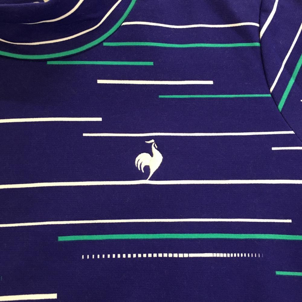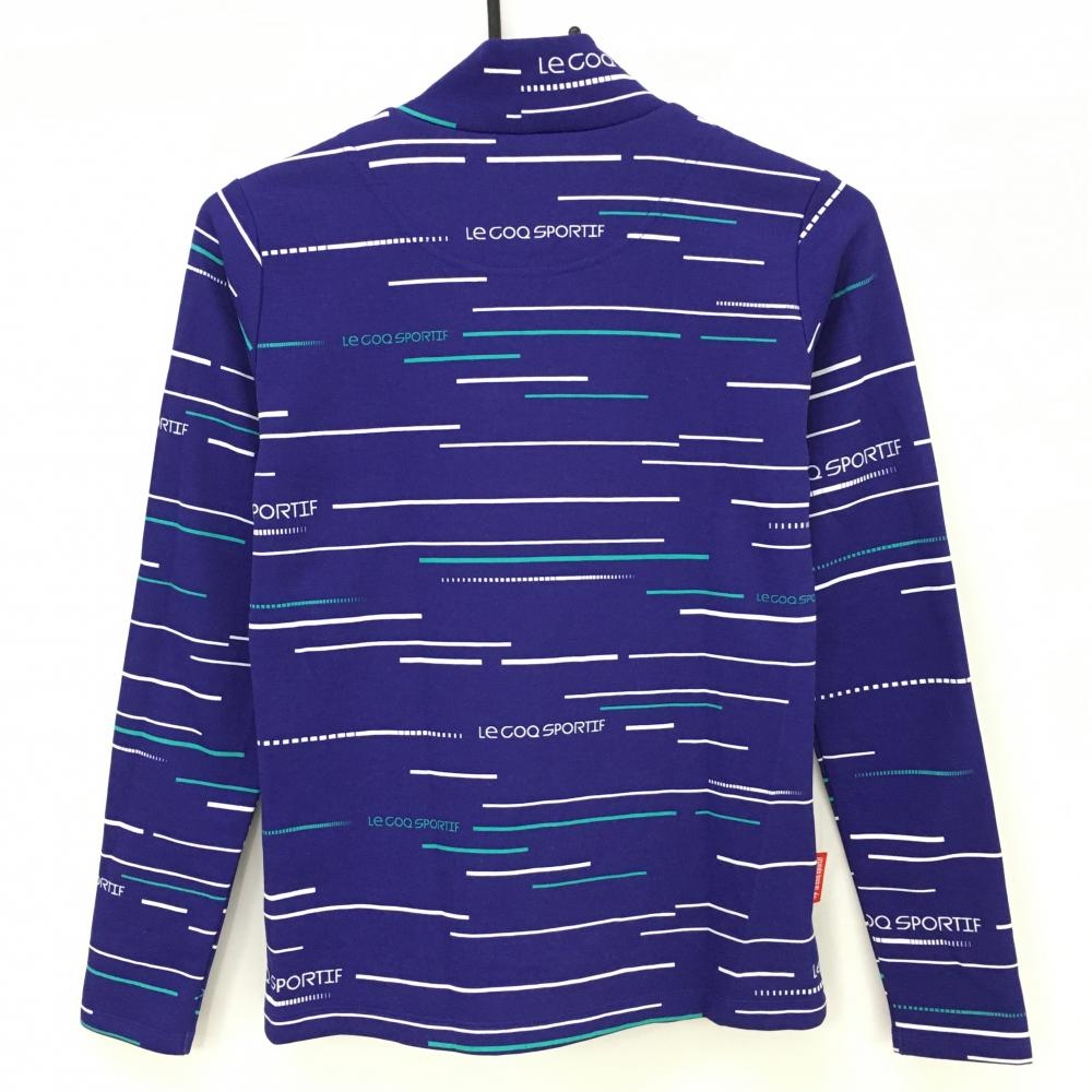 【美品】ルコック 長袖ハイネックシャツ パープル×白 総柄 ロゴ刺しゅう 表微起毛 レディース M ゴルフウェア le coq sportif