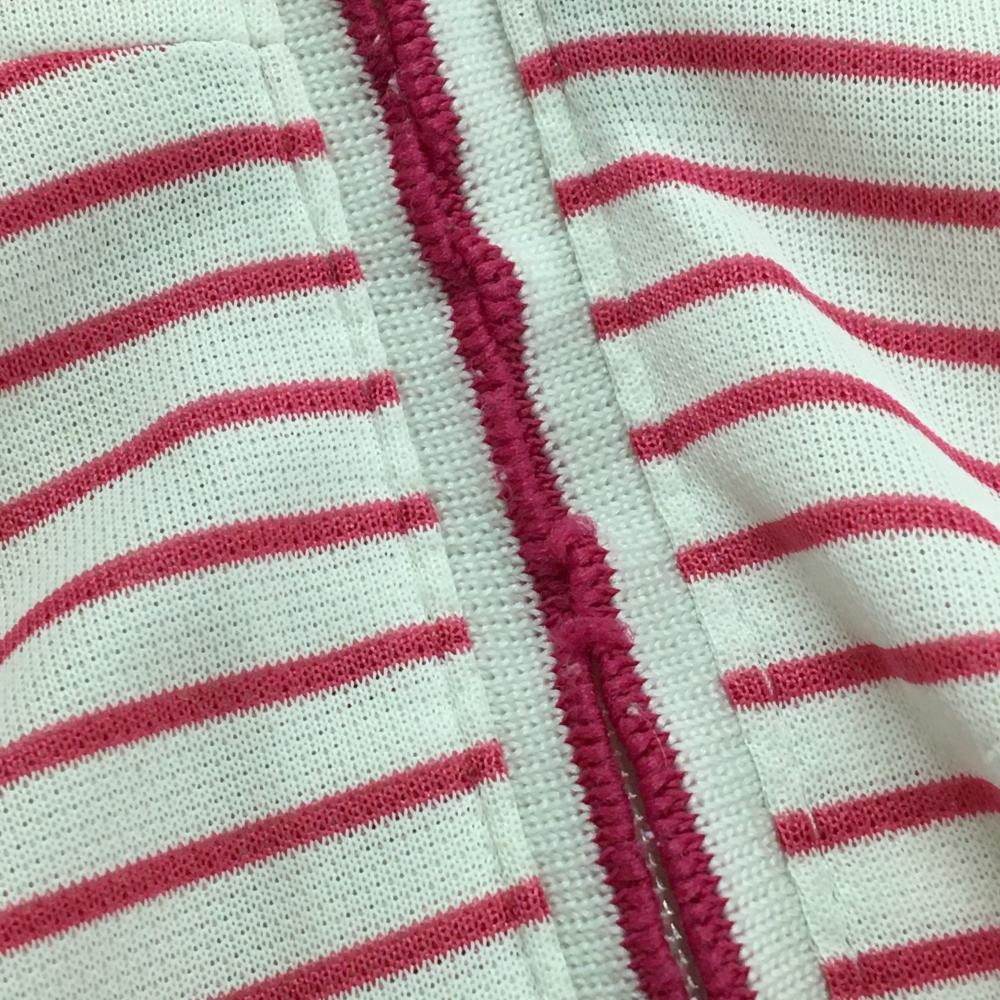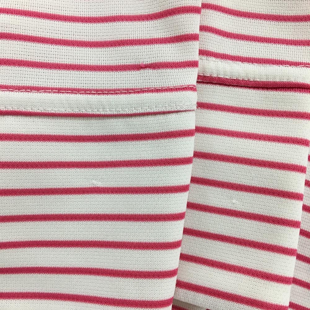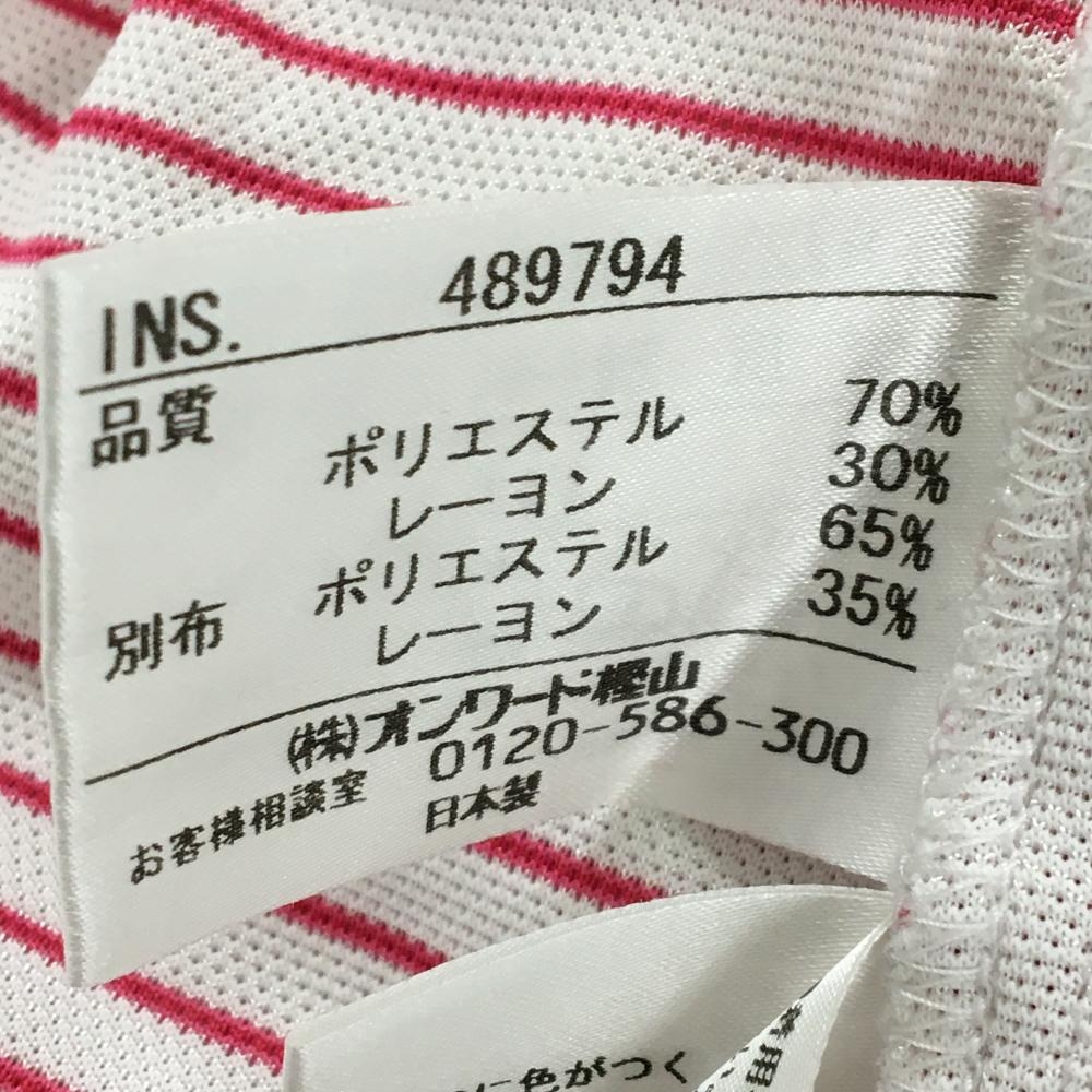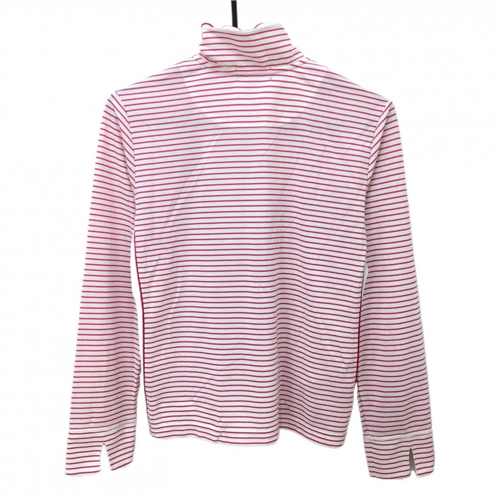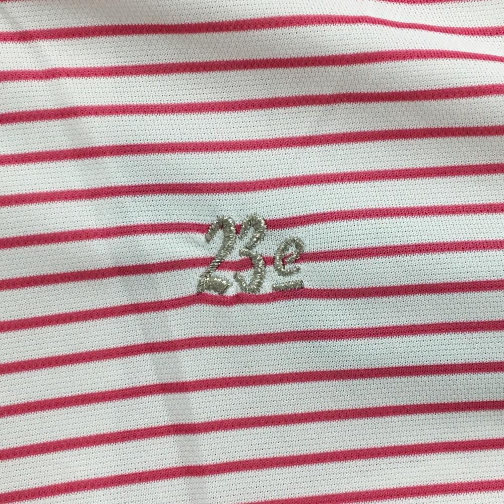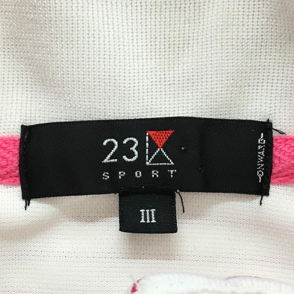 【美品】23区スポーツ 長袖ハイネックシャツ 白×ピンク ボーダー ハーフジップ ロゴ刺しゅう レディース III(XL) ゴルフウェア 23区