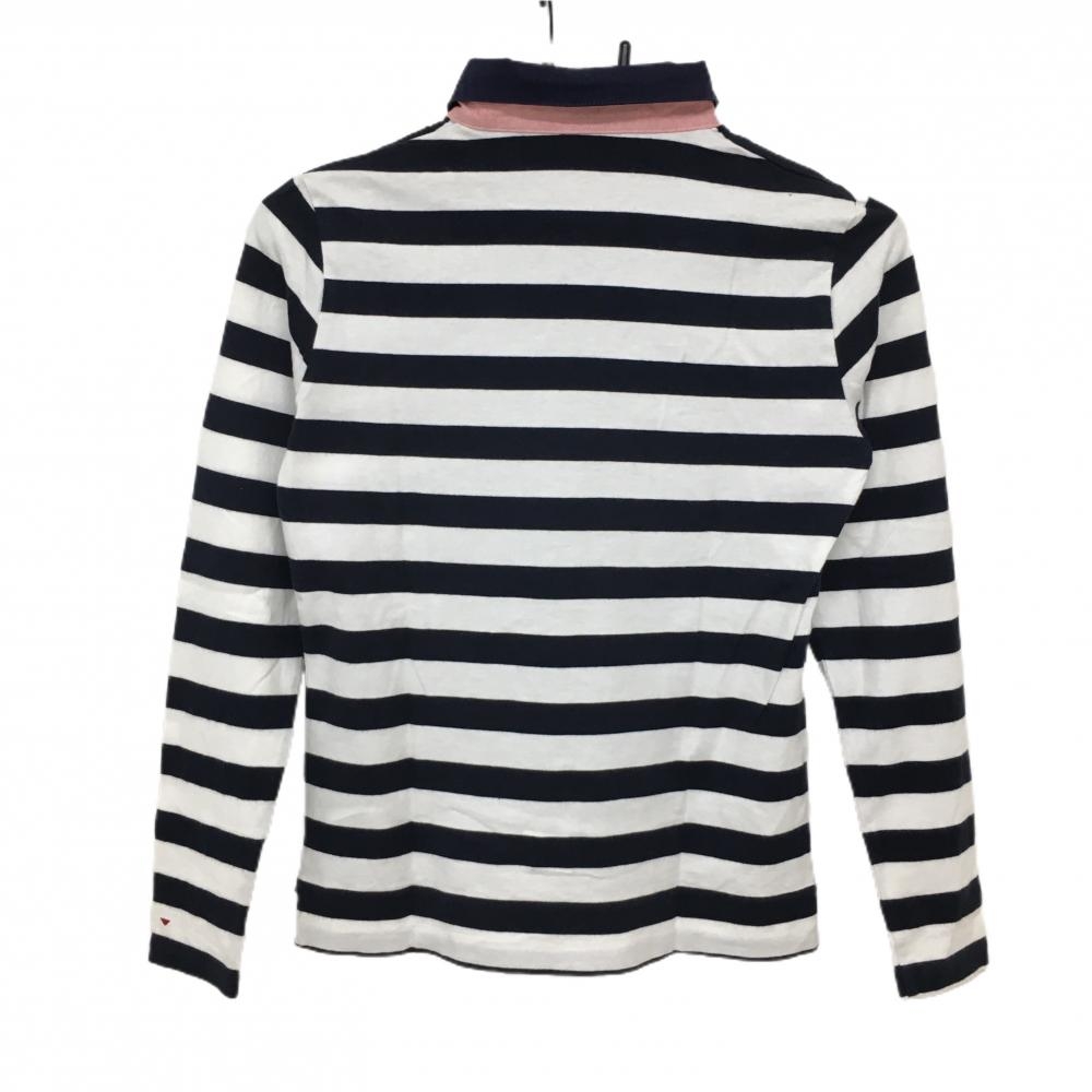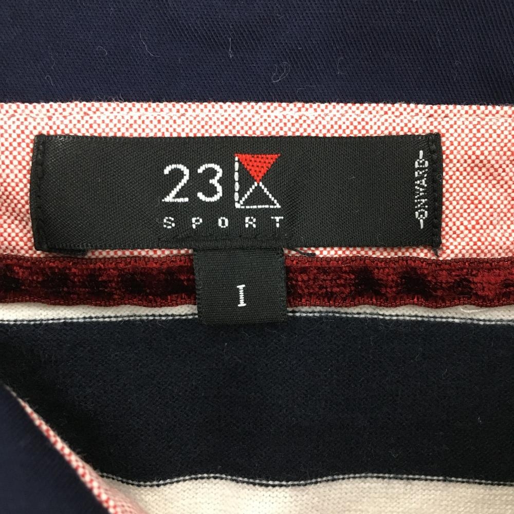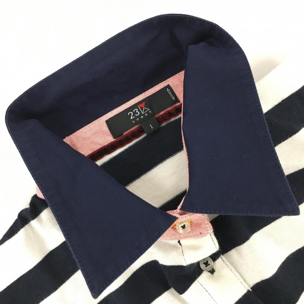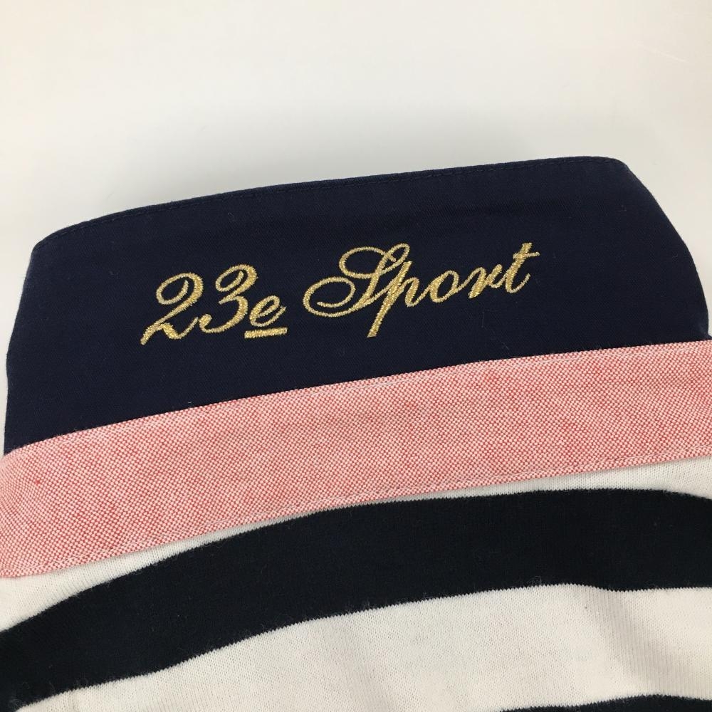 23区スポーツ 長袖ポロシャツ ネイビー×白 ボーダー 襟裏ロゴ レディース I(M ) ゴルフウェア 23区