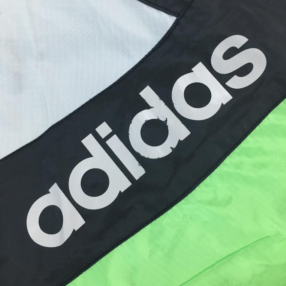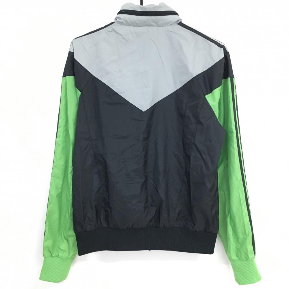 アディダス ジャケットブルゾン 黒×グリーン×ライトグレー 裏メッシュ フード収納 レディース S ゴルフウェア adidas