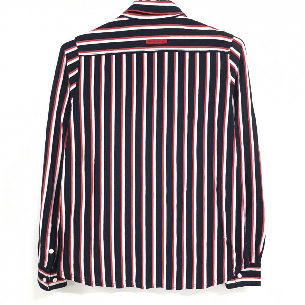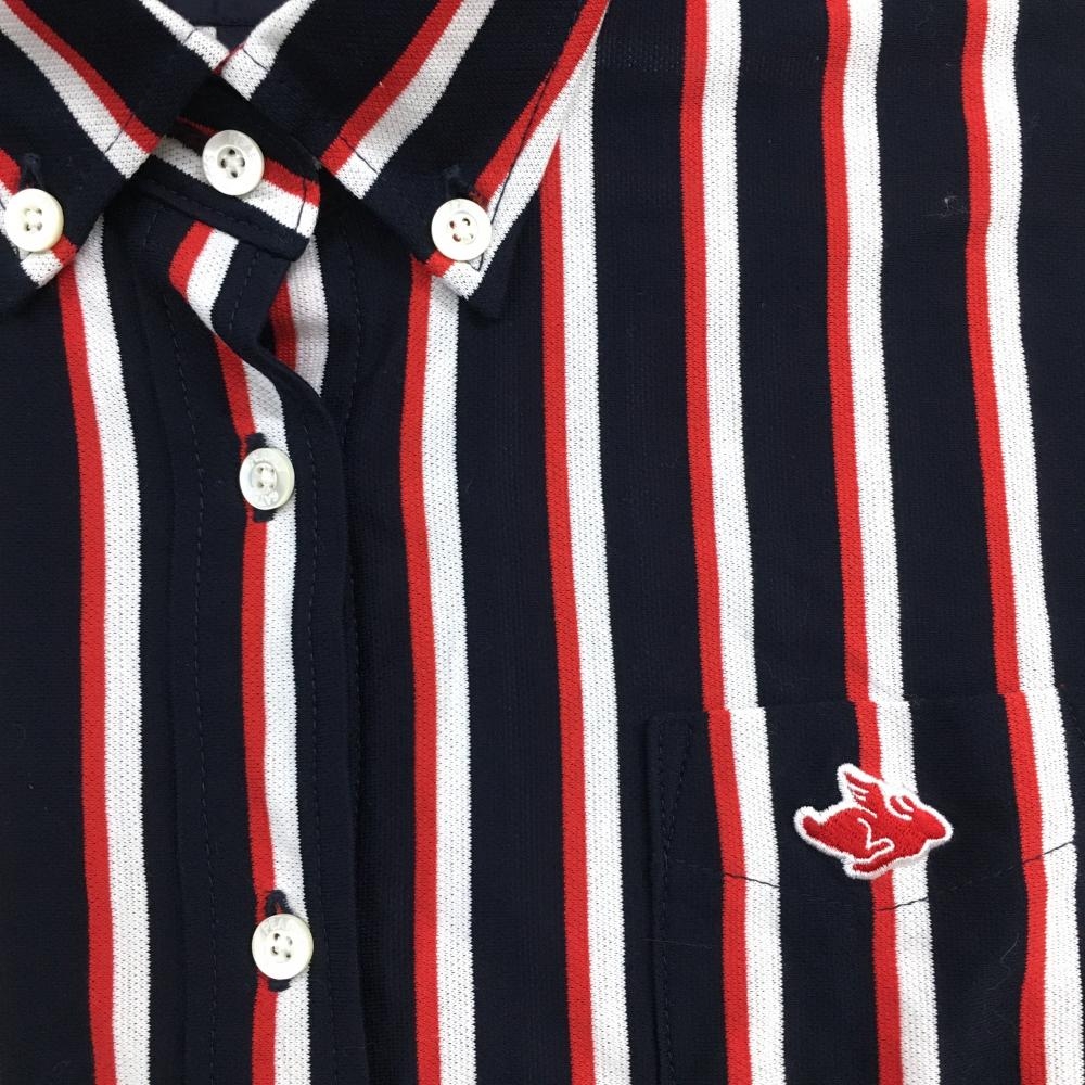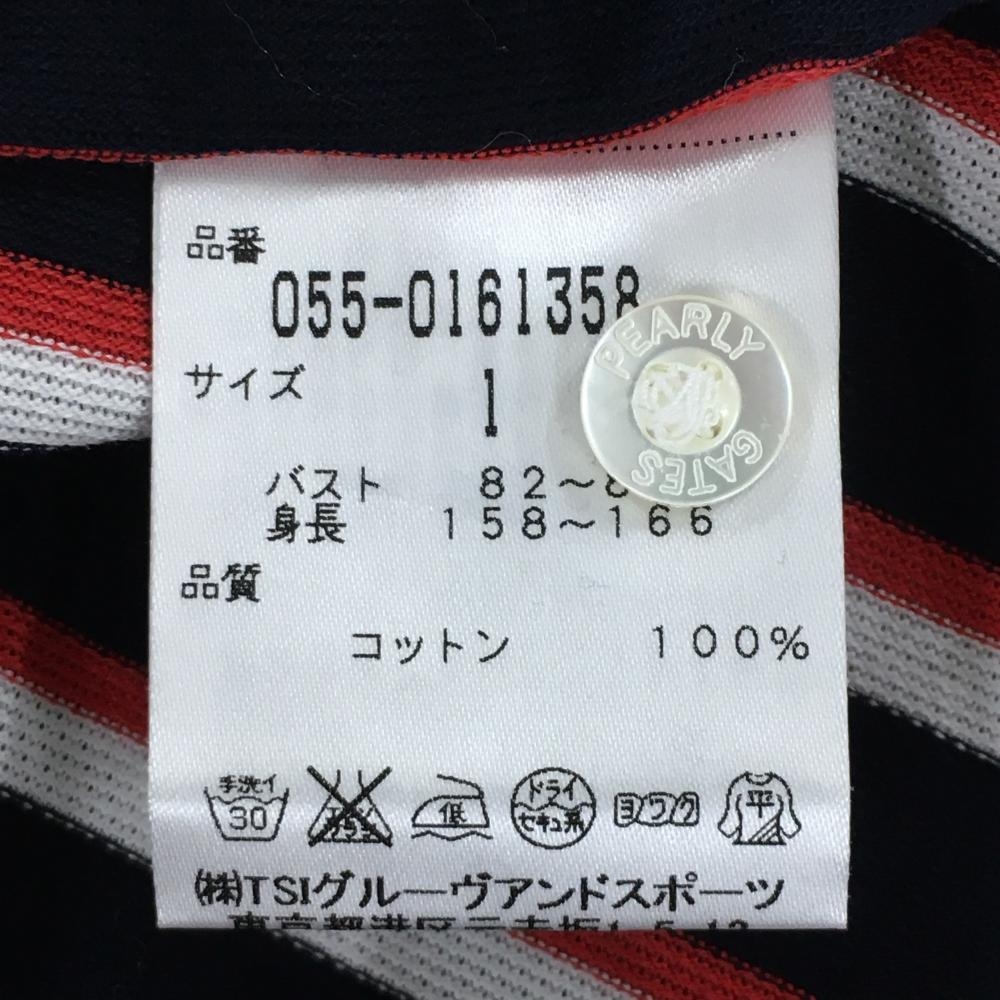 【超美品】パーリーゲイツ 長袖シャツ ダークネイビー×レッド ストライプ ボタンダウン レディース 1(M) ゴルフウェア PEARLY GATES