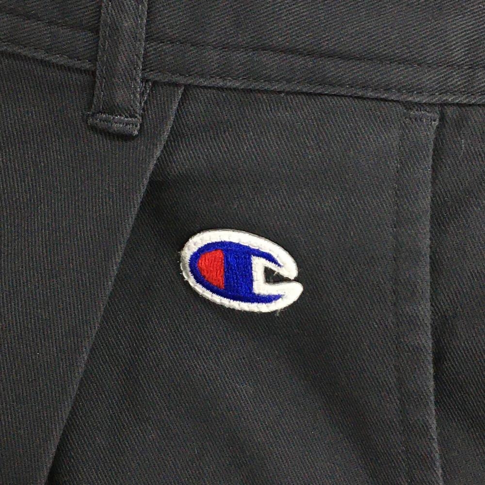 【美品】チャンピオン タックパンツ ダークグレー シンプル ロゴワッペン レディース MEDIUM ゴルフウェア Champion
