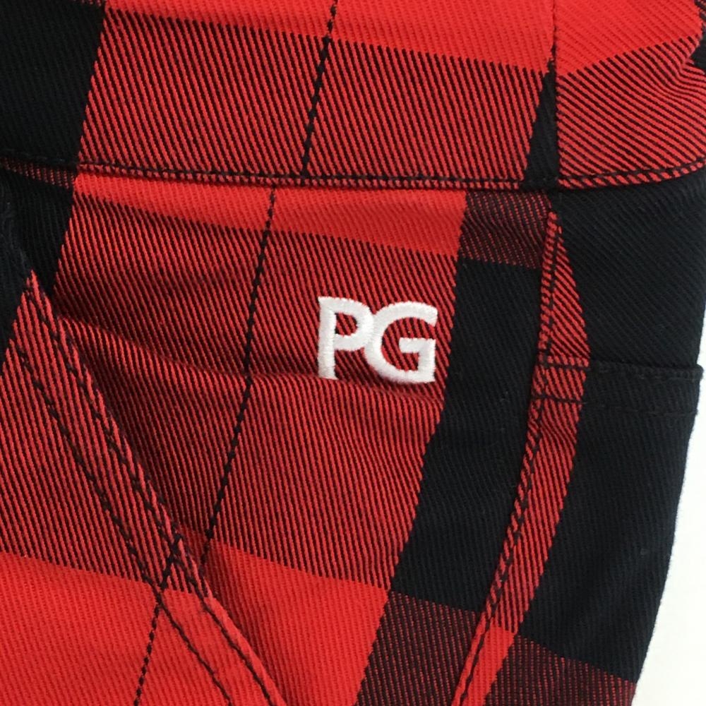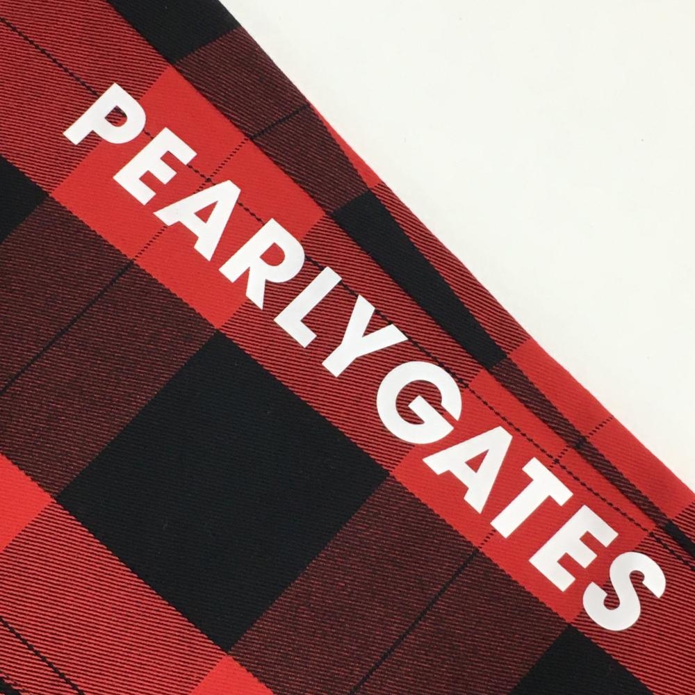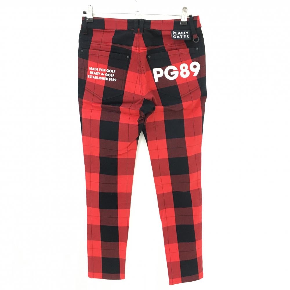 【超美品】パーリーゲイツ パンツ レッド×黒 チェック ストレッチ ロゴプリント レディース 1(M) ゴルフウェア PEARLY GATES