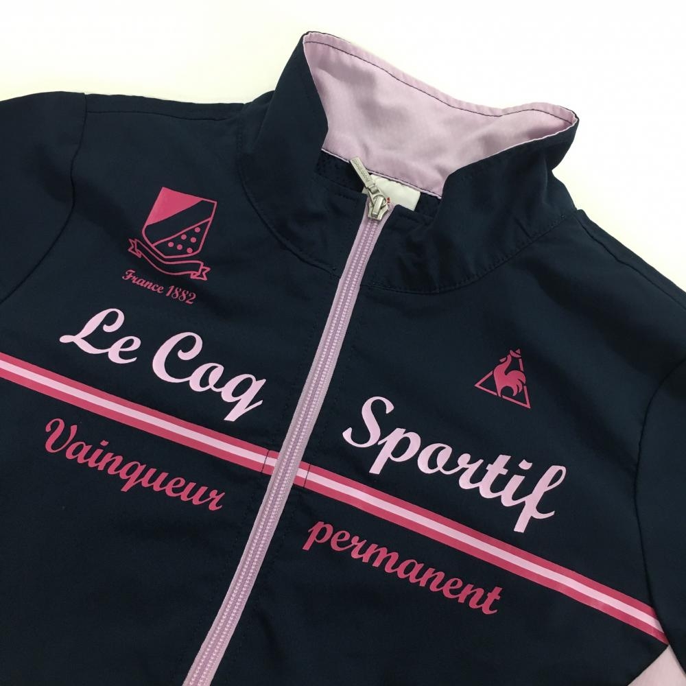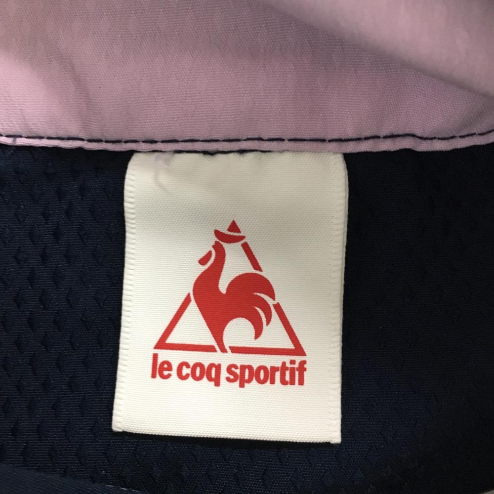 【美品】ルコック ジャケットブルゾン ネイビー×ライトパープル ロゴプリント レディース S ゴルフウェア le coq sportif