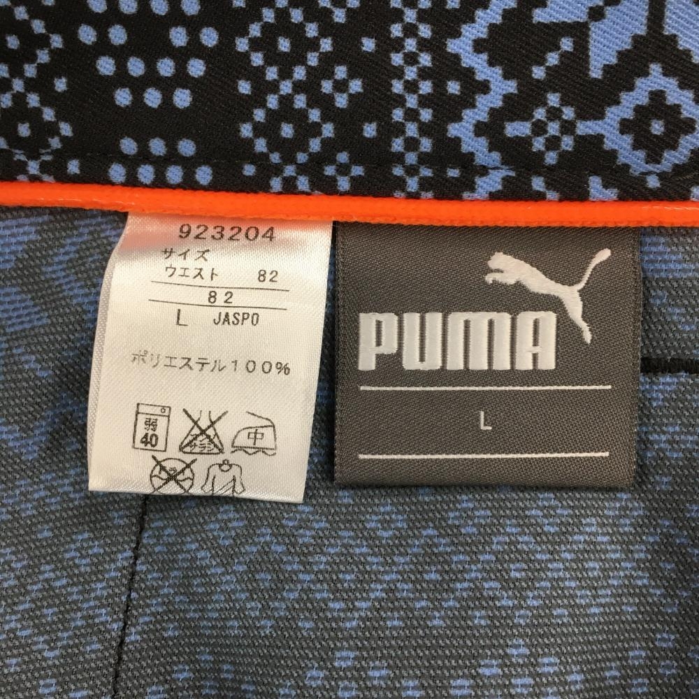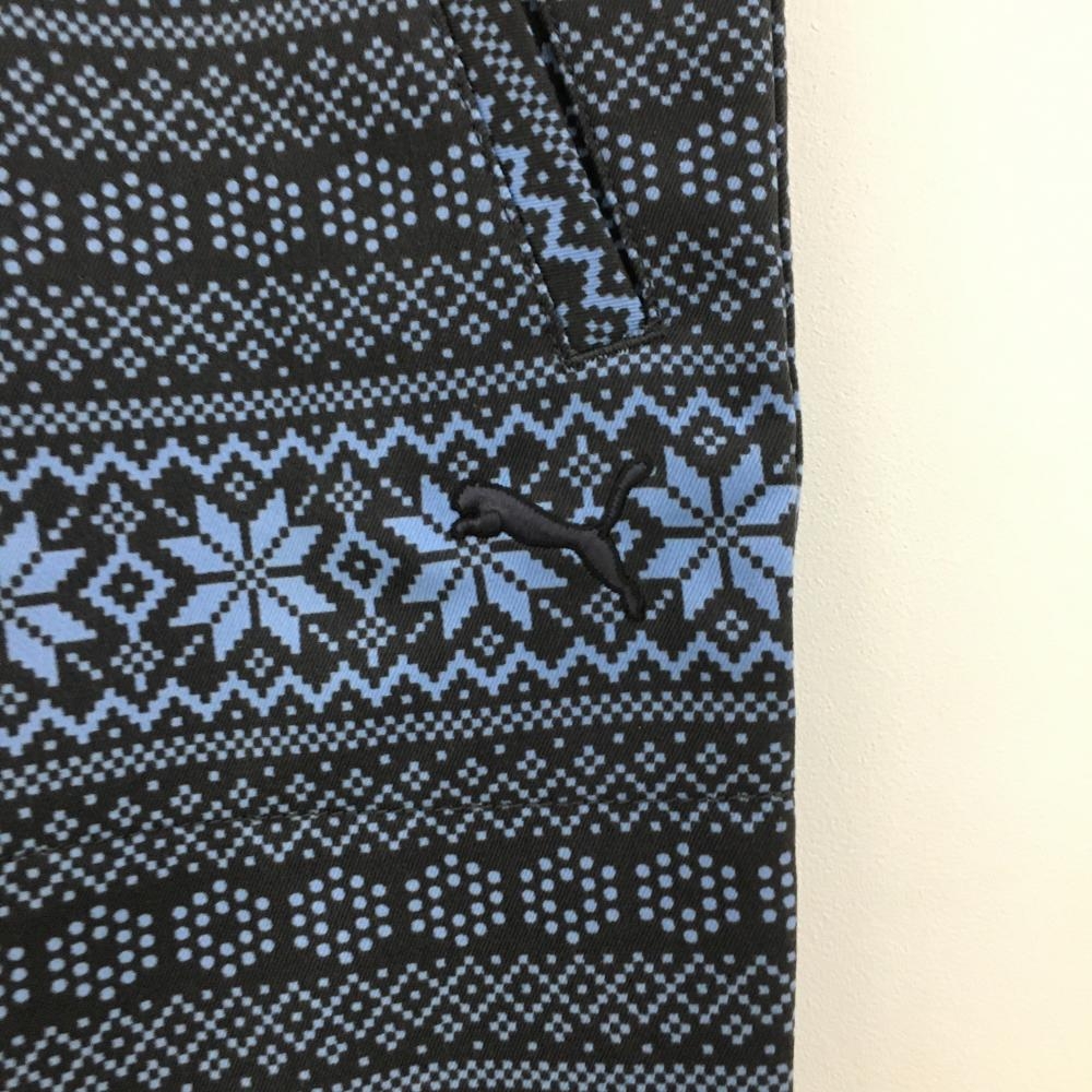 【美品】プーマ パンツ ダークグレー×ライトブルー ノルディック柄 総柄 ストレッチ メンズ L ゴルフウェア PUMA