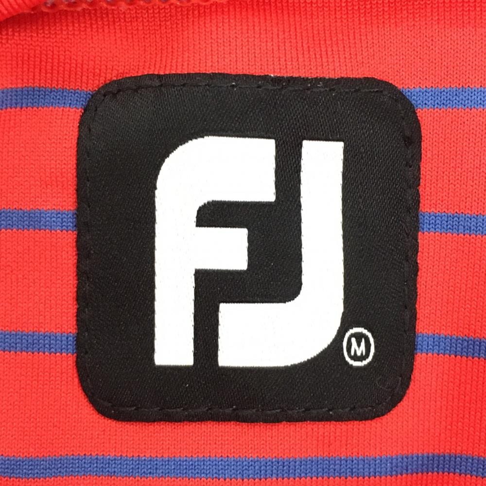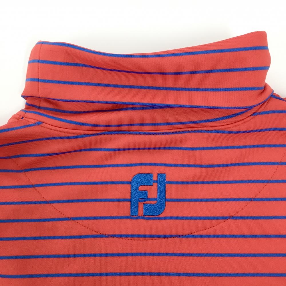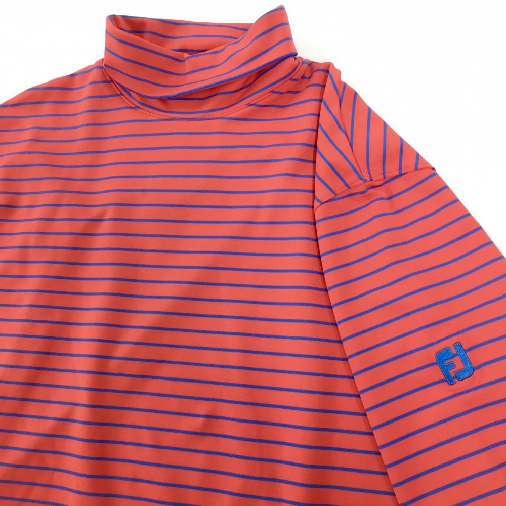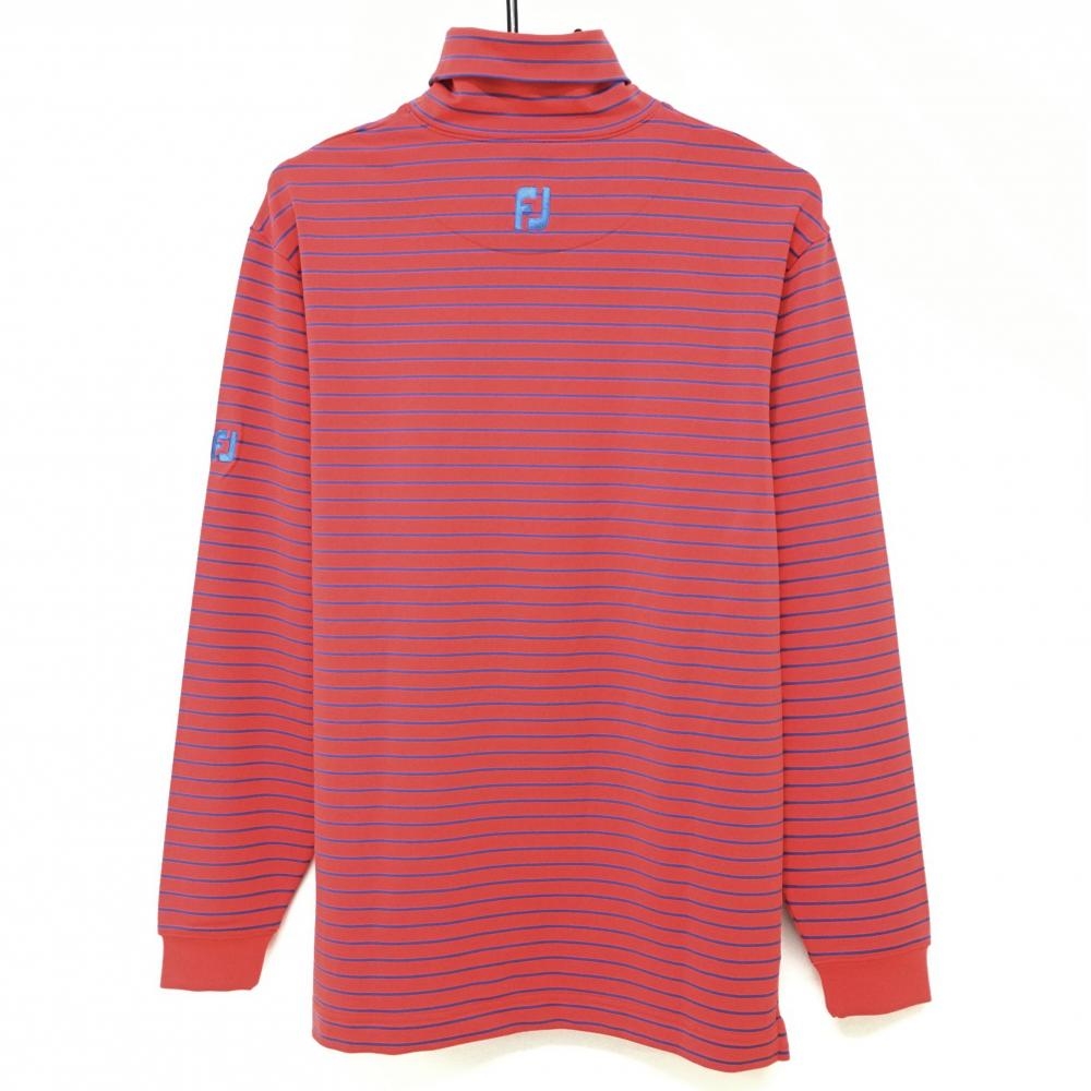 【超美品】フットジョイ 長袖タートルネックシャツ レッド×ブルー ボーダー ストレッチ メンズ M ゴルフウェア FootJoy