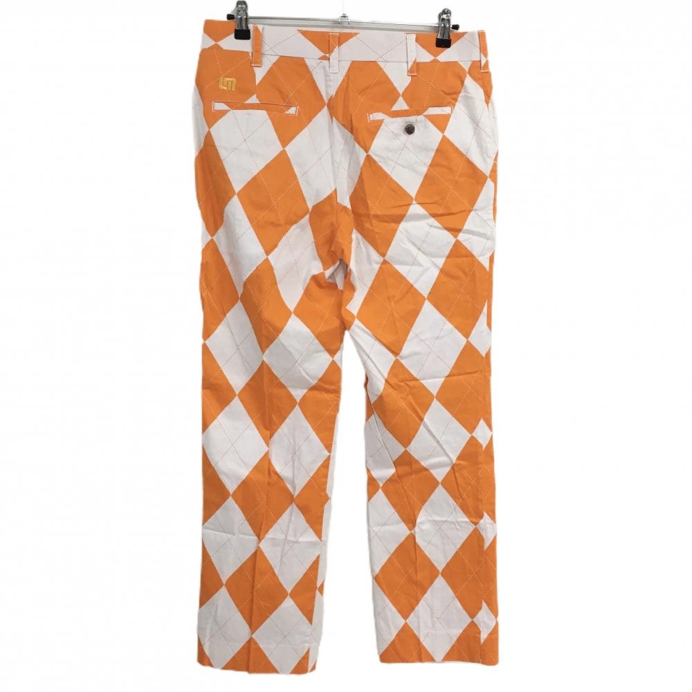 【美品】ラウドマウス パンツ オレンジ×白 アーガイル柄 バックロゴ メンズ 34×34L ゴルフウェア LOUDMOUTH