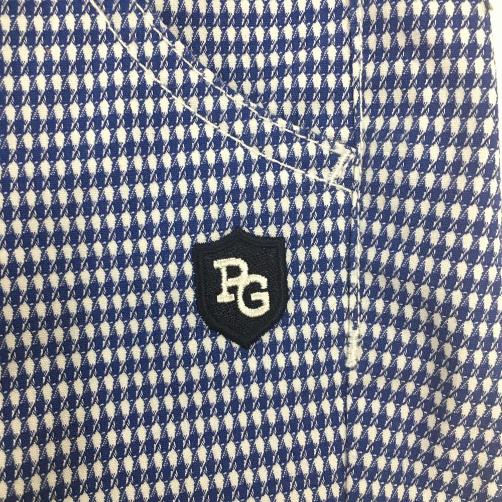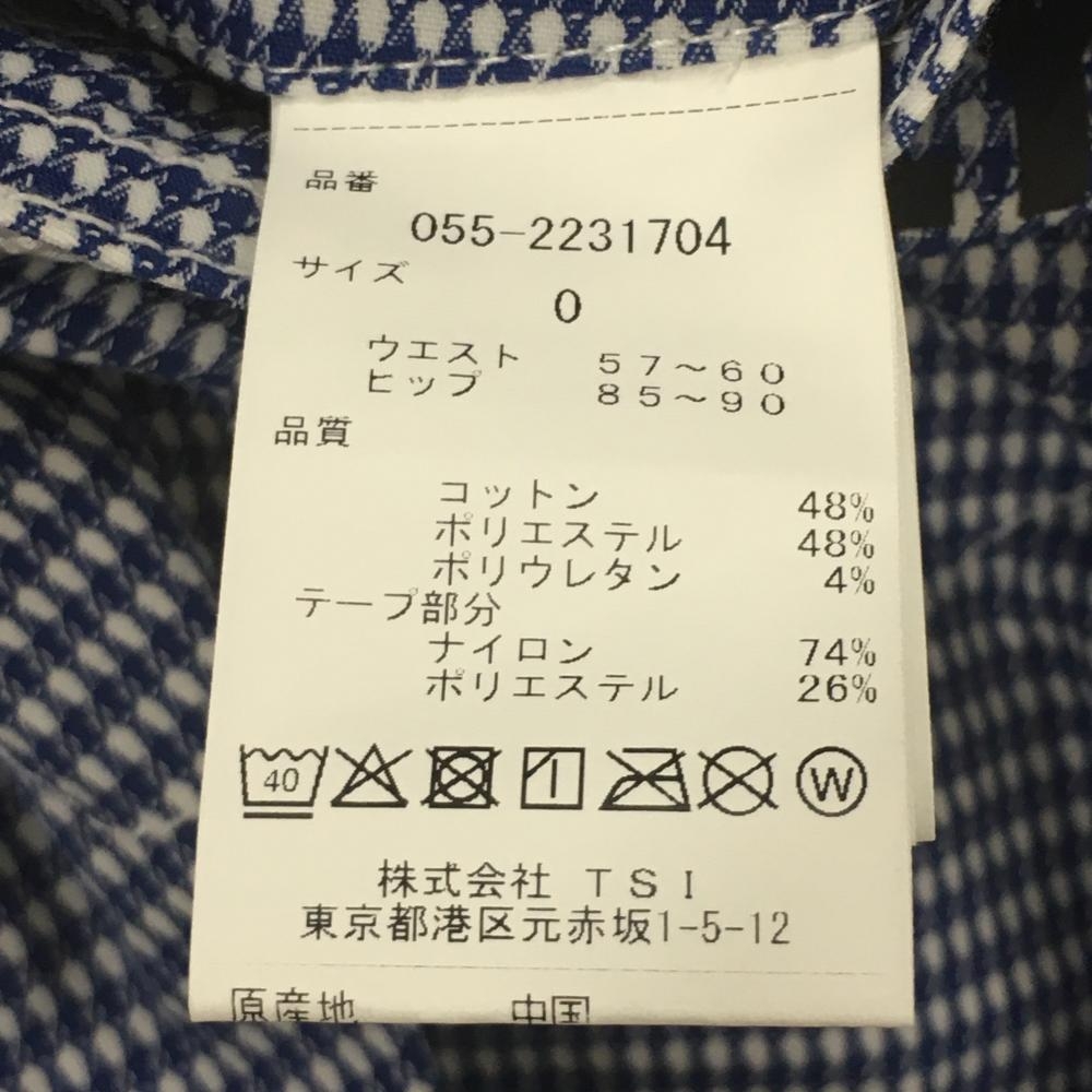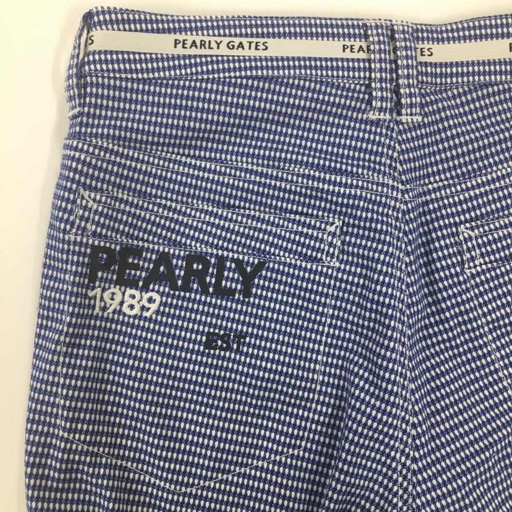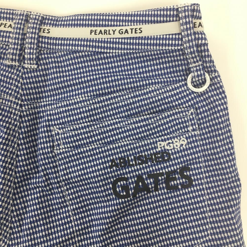 【超美品】パーリーゲイツ パンツ ブルー×白 織生地 ヒップロゴプリント レディース 0(S) ゴルフウェア 2022年モデル PEARLY GATES