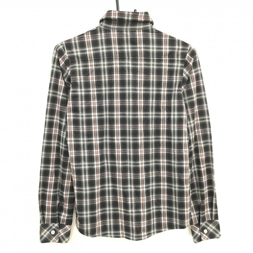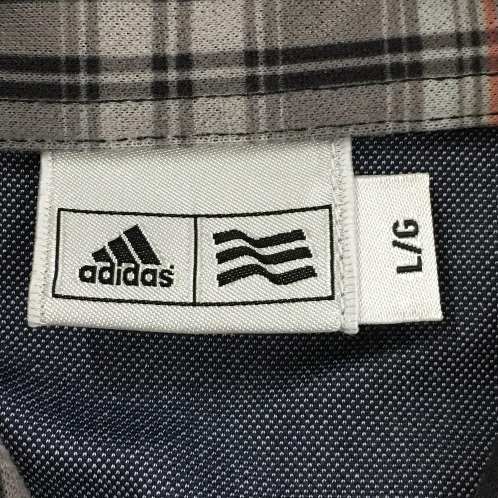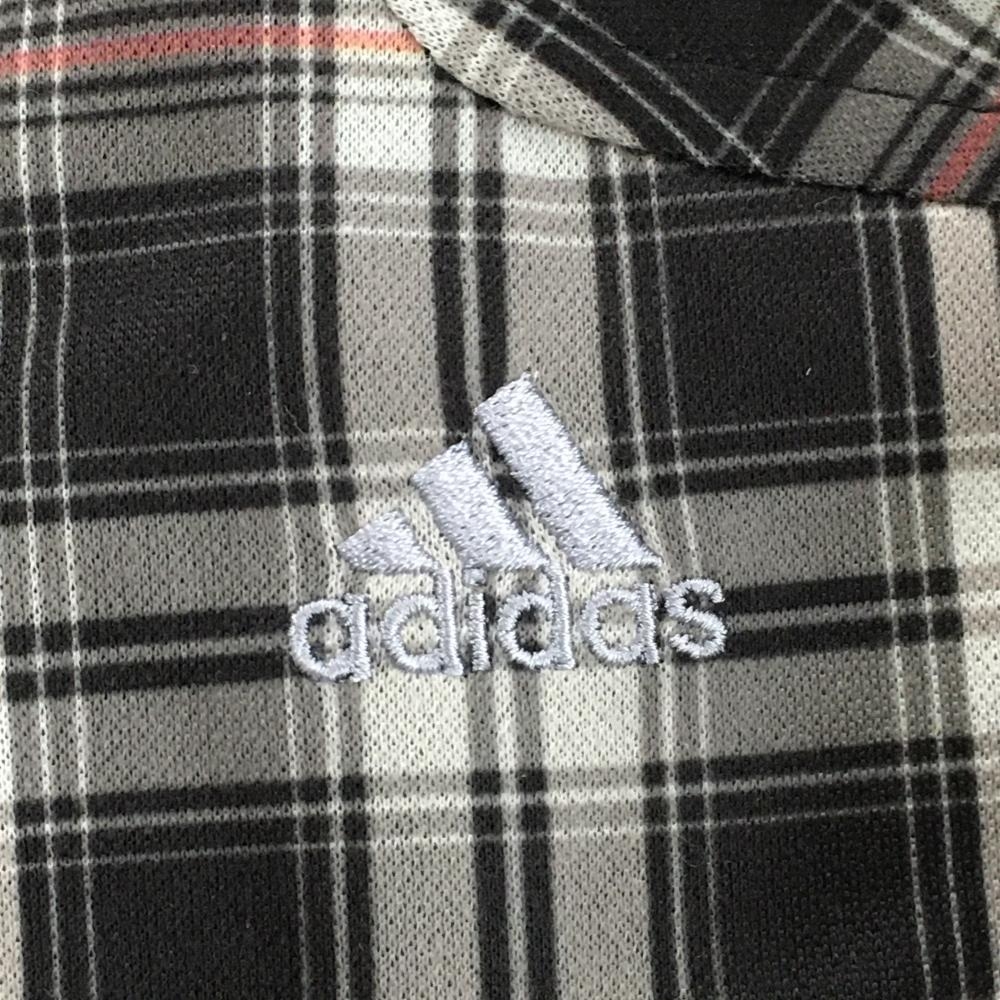 【超美品】アディダス 長袖ポロシャツ 黒×グレー×レッド チェック柄 ロゴ刺しゅう 袖口ボタン レディース L/G ゴルフウェア adidas