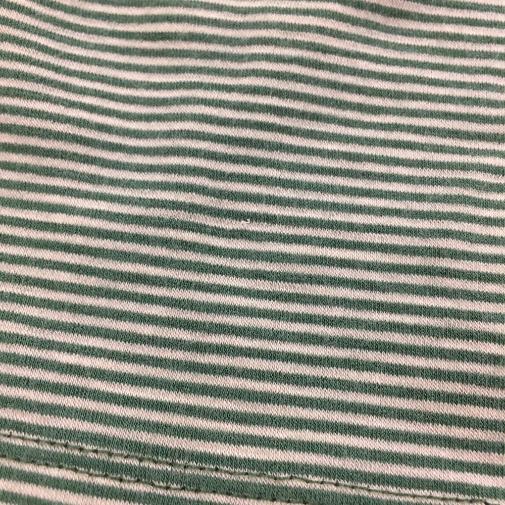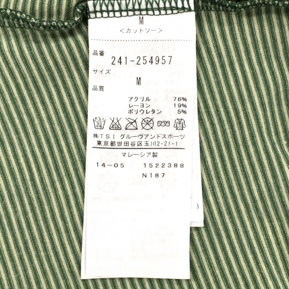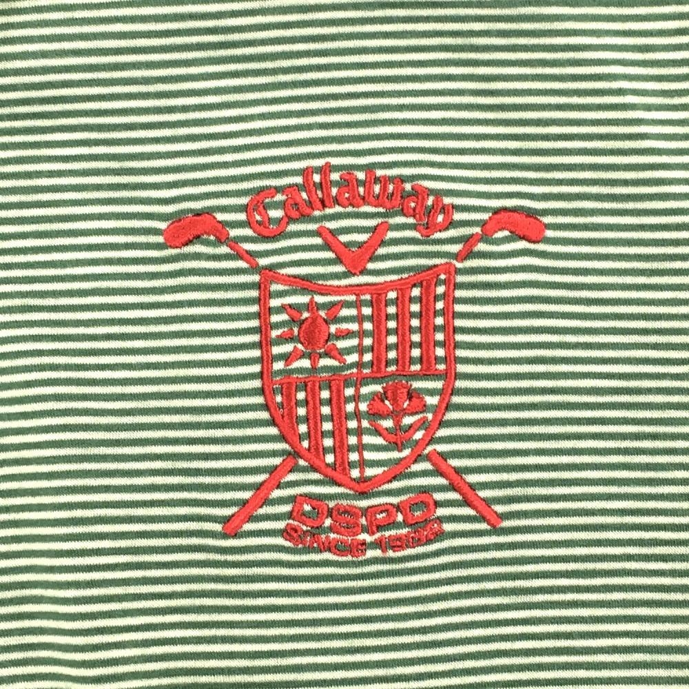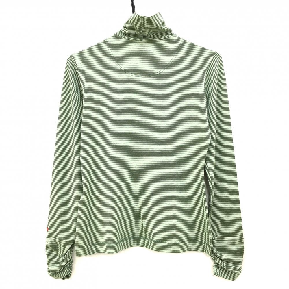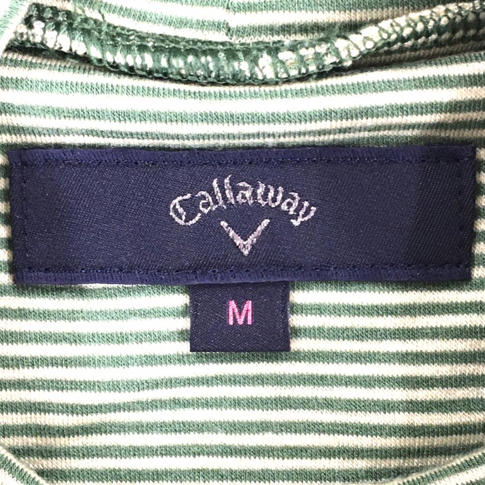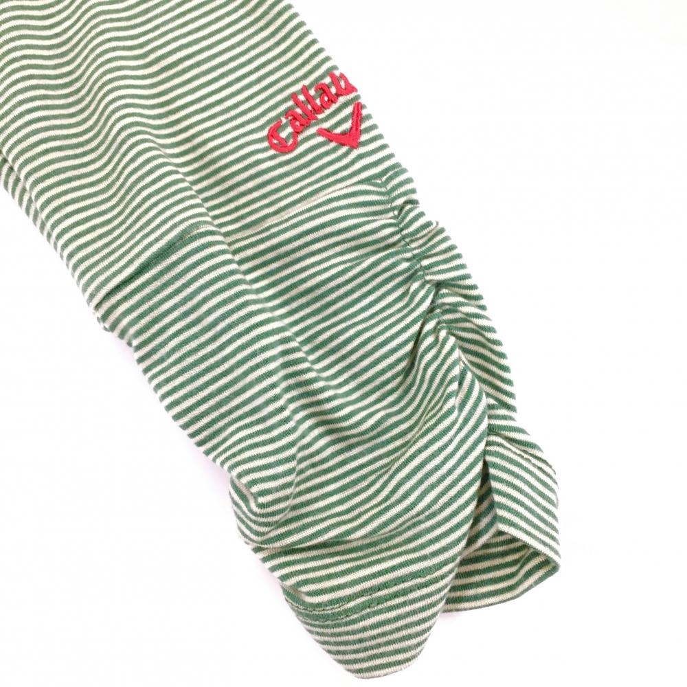 【美品】キャロウェイ 長袖ハイネックシャツ グリーン×白 細ボーダー ロゴ刺しゅう レディース M ゴルフウェア Callaway